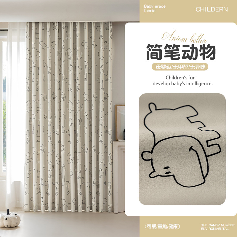 북유럽 스타일 신선한 식물 만화 커튼 거실 침실 연구 크리 에이 티브 어린이 커튼 다채로운 구름스토어 가기