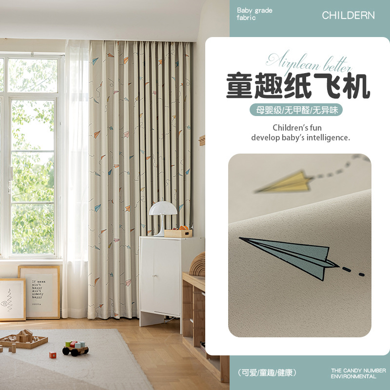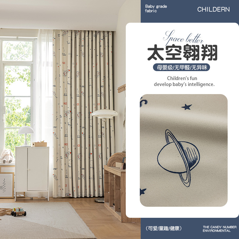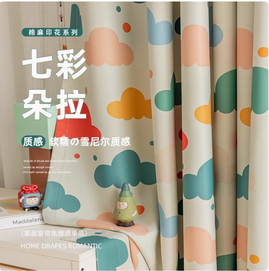 북유럽 스타일 신선한 식물 만화 커튼 거실 침실 연구 크리 에이 티브 어린이 커튼 다채로운 구름
