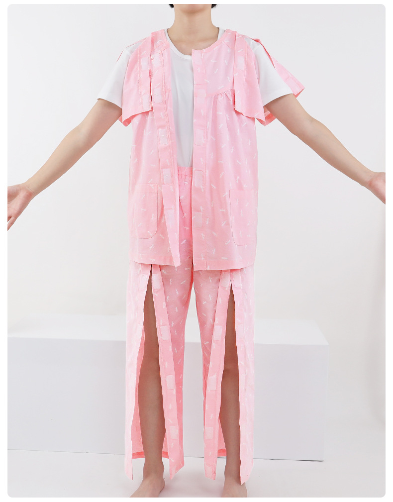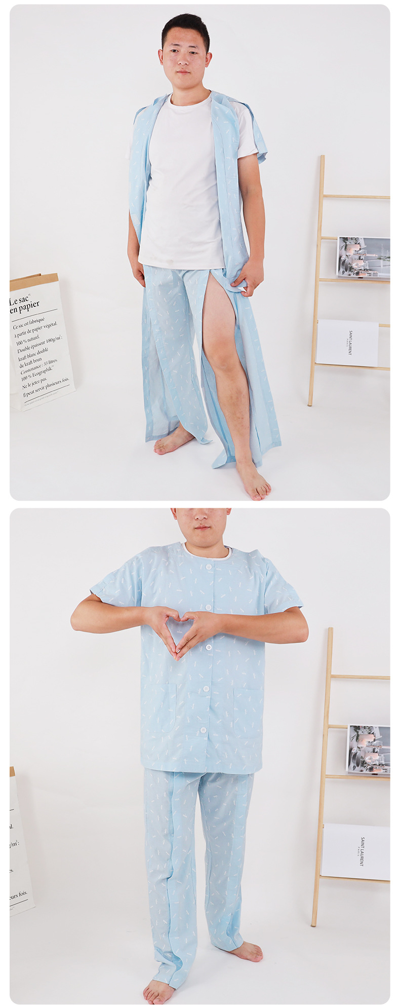 봄과 여름 입거나 벗기 쉬운 병원 가운 골절 용 여름 간호 가운 남성용 장기 식물 마비 침대 노인 잠옷