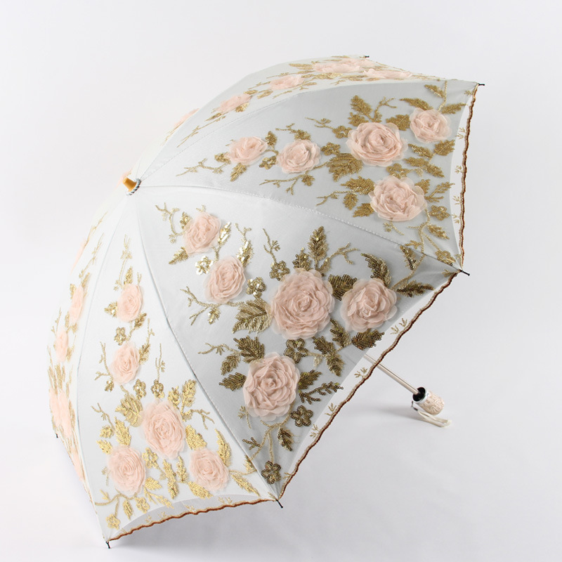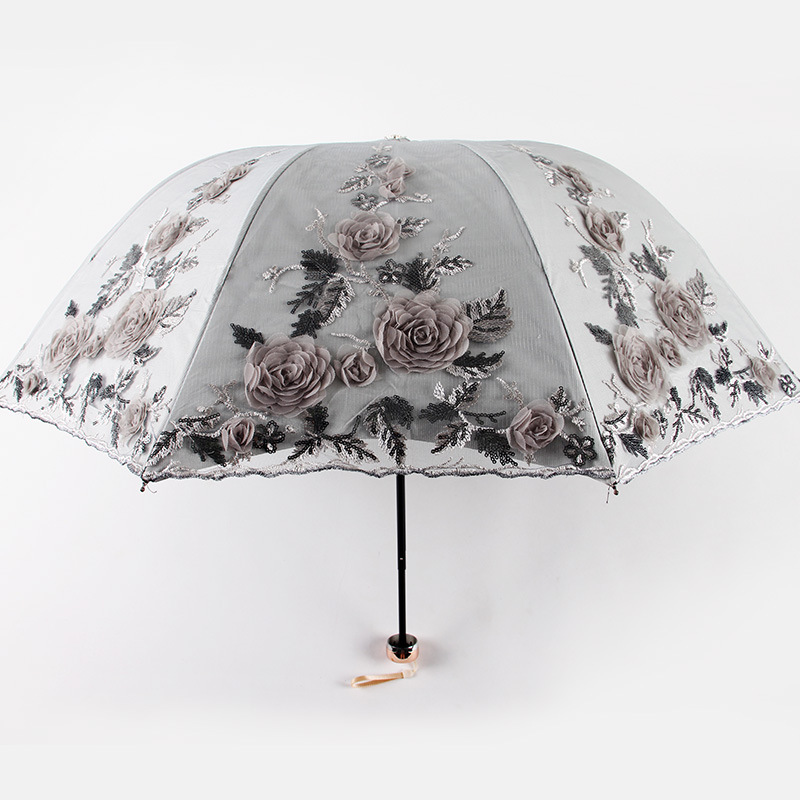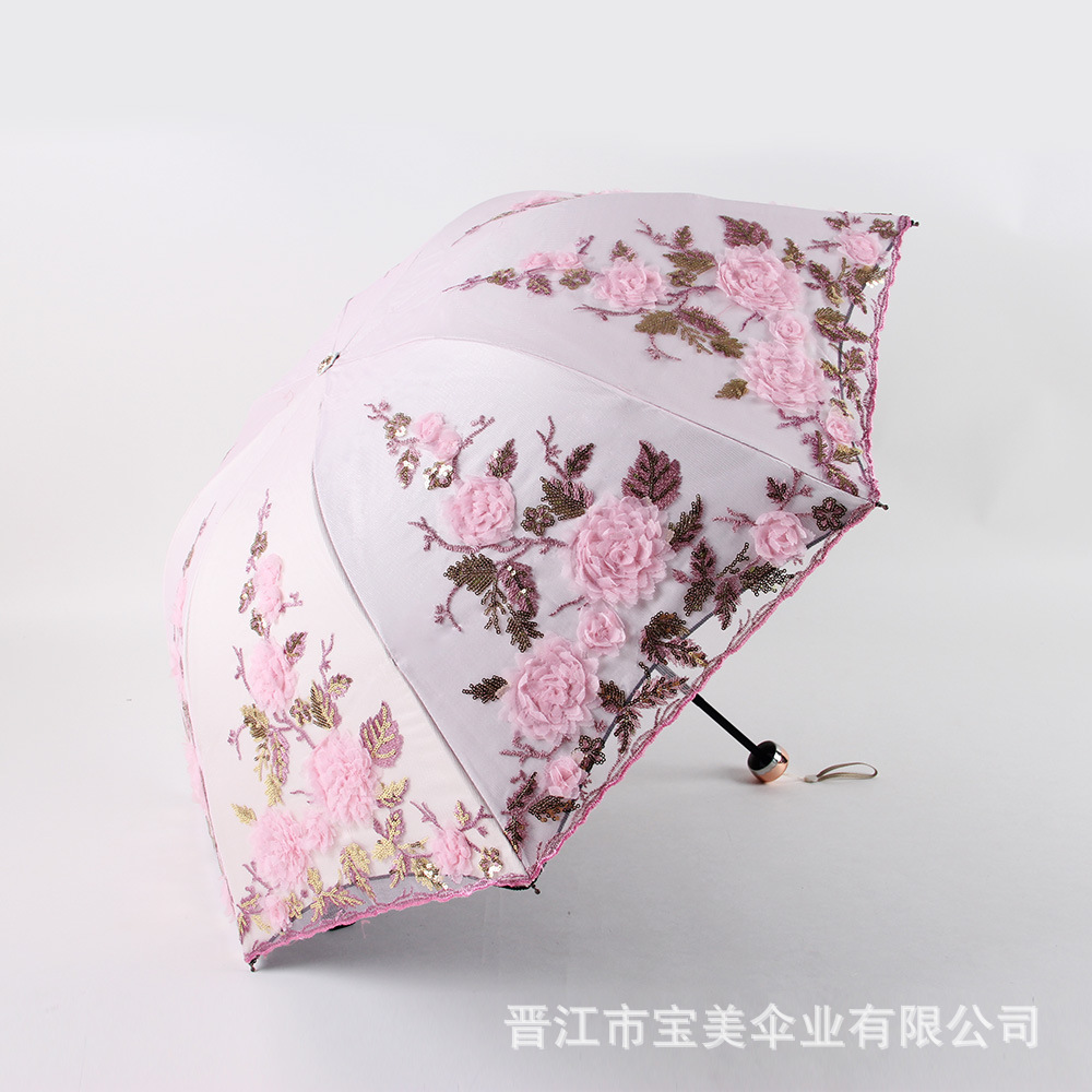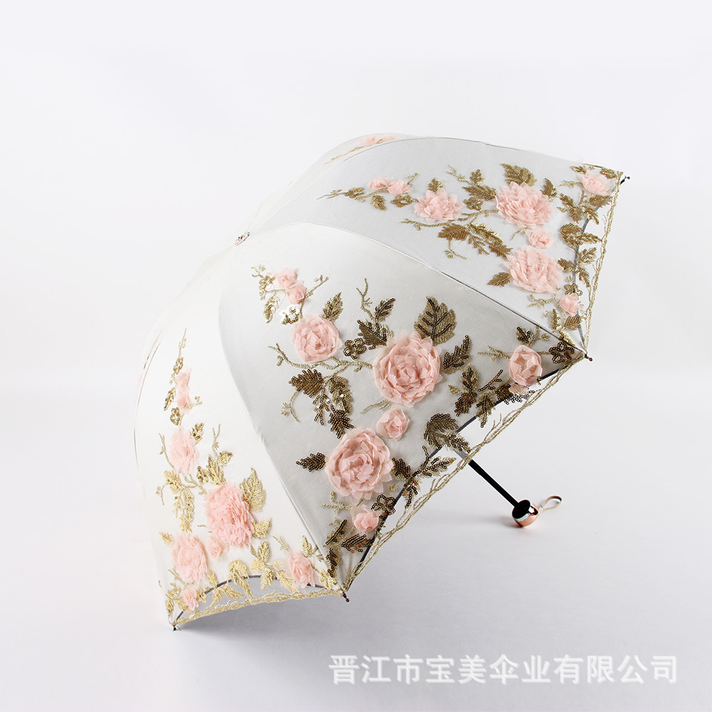 3 중 더블 레이어 자수 우산 자외선 방지 태양 우산 1821 태양 우산 레이스 자수 우산 맑고 비오는 이중 사용