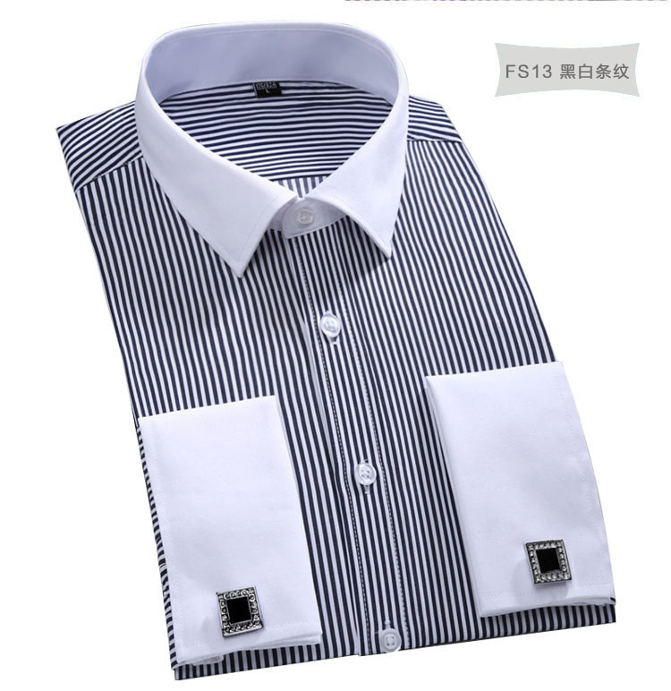 자수 로고 2018 새로운 AliExpress/아마존/프랑스 커프스 단추 플러스 사이즈 셔츠 남성용 긴 소매 비즈니스 안감