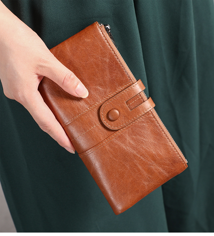 JOGUJOS 크로스보더 정품 가죽 여성용 지갑 소가죽 동전 지갑 고급 여성 패션 롱 지갑 카드 홀더