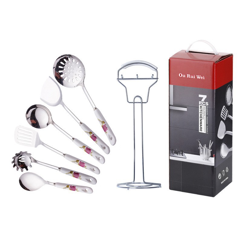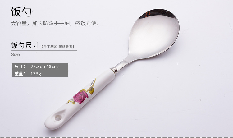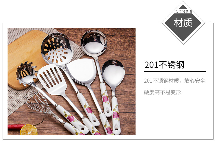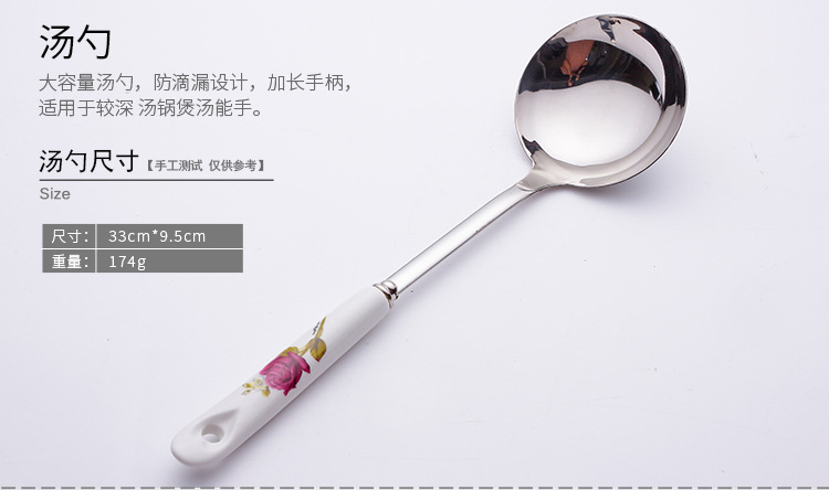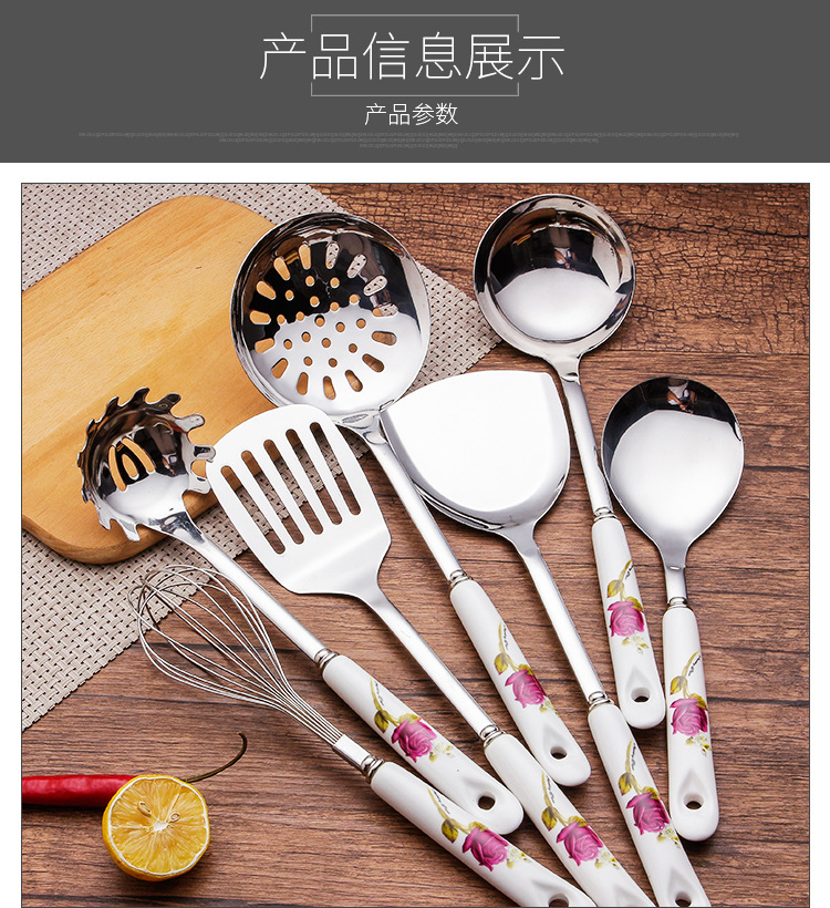 세라믹 손잡이 스테인레스 스틸 주걱 주방용품 세트 주걱 스프 스푼 미끄럼 방지 고온 내성 화상 방지 주방 가정용 호텔스토어 가기