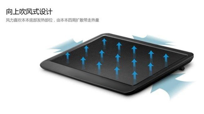 2.独体的架高立体风口设计,散热效果更佳;让使用者可以不受限制的在膝上或床上使用.