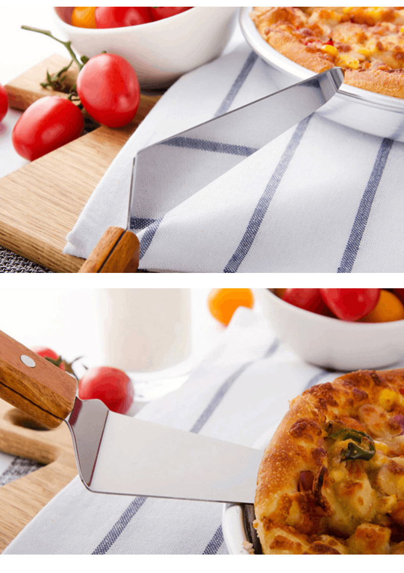 厂家现货木柄不锈钢三角铲蛋糕铲 烘焙耐高温芝士铲子三角披萨铲PIZZA工具不锈钢披萨铲刀蛋糕铲子 烘焙耐高温芝士铲子三角披萨铲