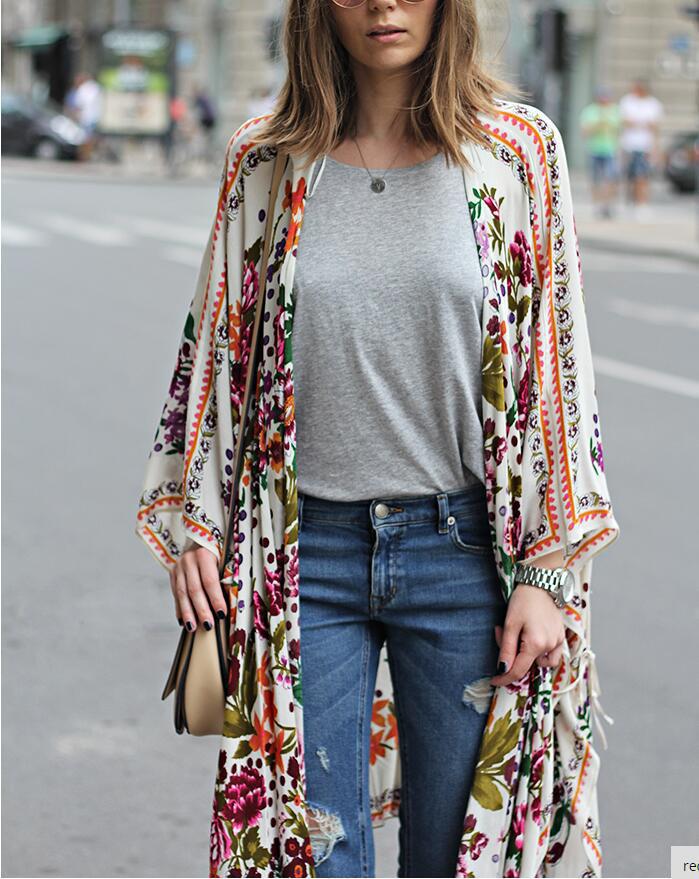 AliExpress 아마존 유럽과 미국의 디지털 포지셔닝 인쇄 긴 카디건 비키니 비치 블라우스