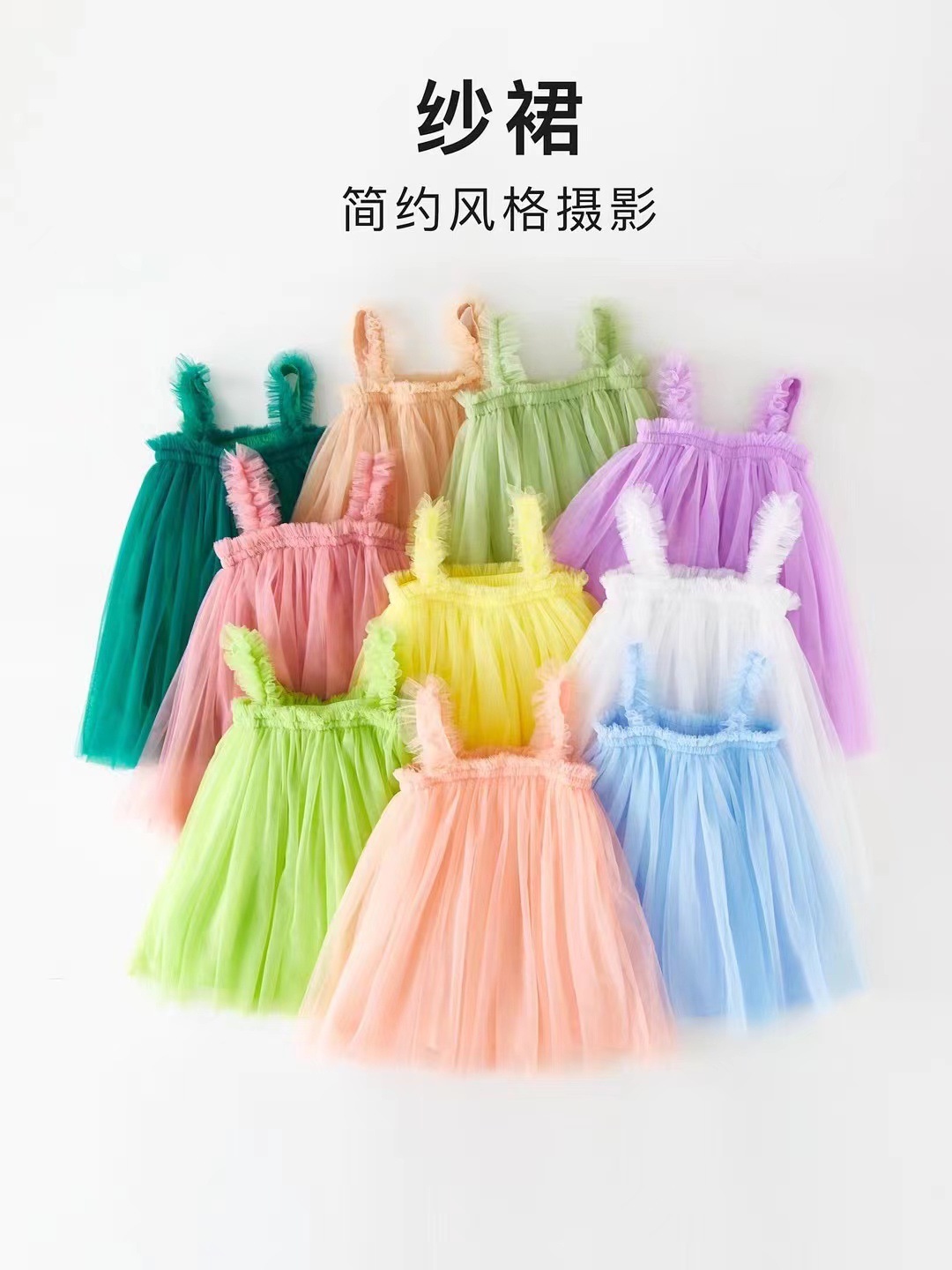여름 새로운 여자 콘돌 스트랩 메쉬 스커트 원피스 어린이 메쉬 스커트 공주 치마 머리카락의 세대