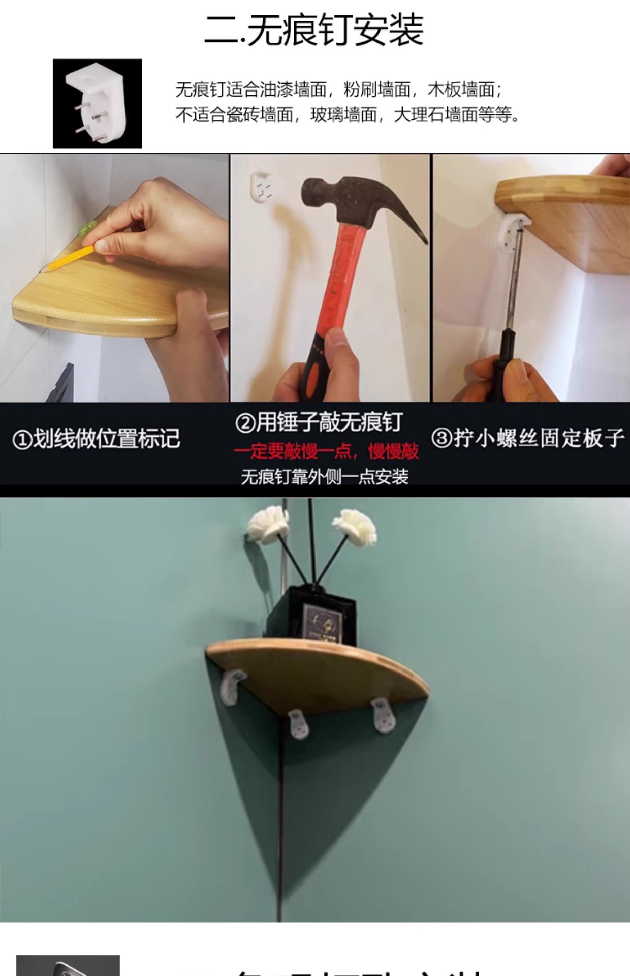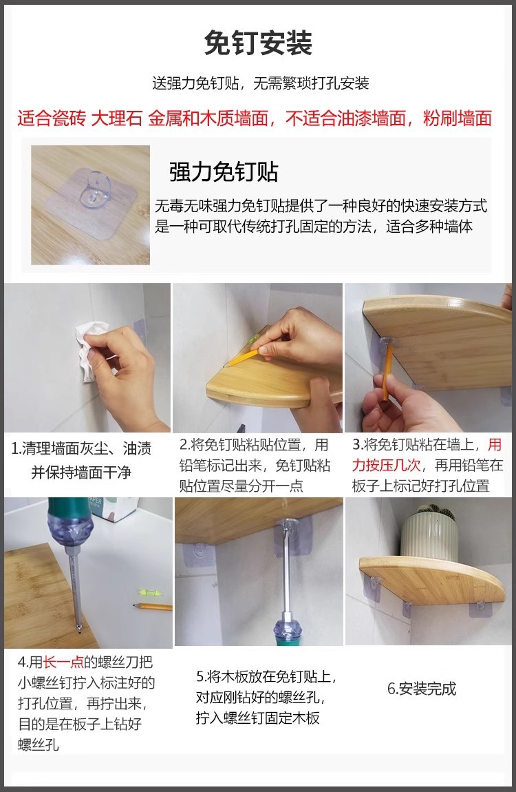 대나무 라운드 파티션 코너 스토리지 랙 벽걸이 코너 주방 욕실 스토리지 랙 간단한 펀치 무료스토어 가기
