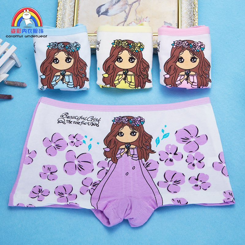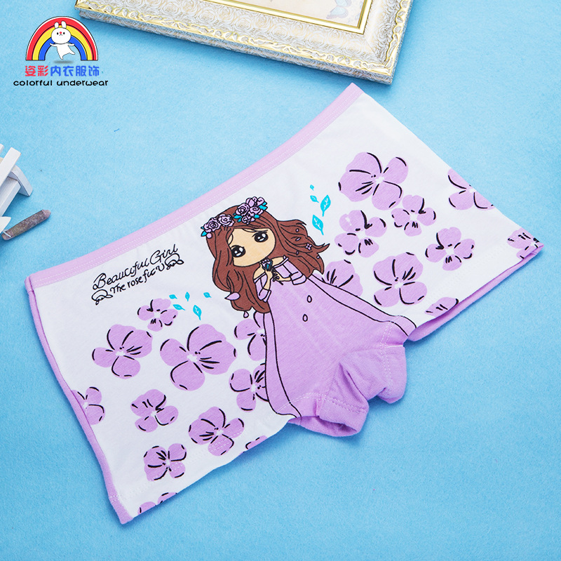 새로운 어린이 속옷 신선한 꽃 소녀 순면 통기성 면 편안한 속옷 여아 사각스토어 가기