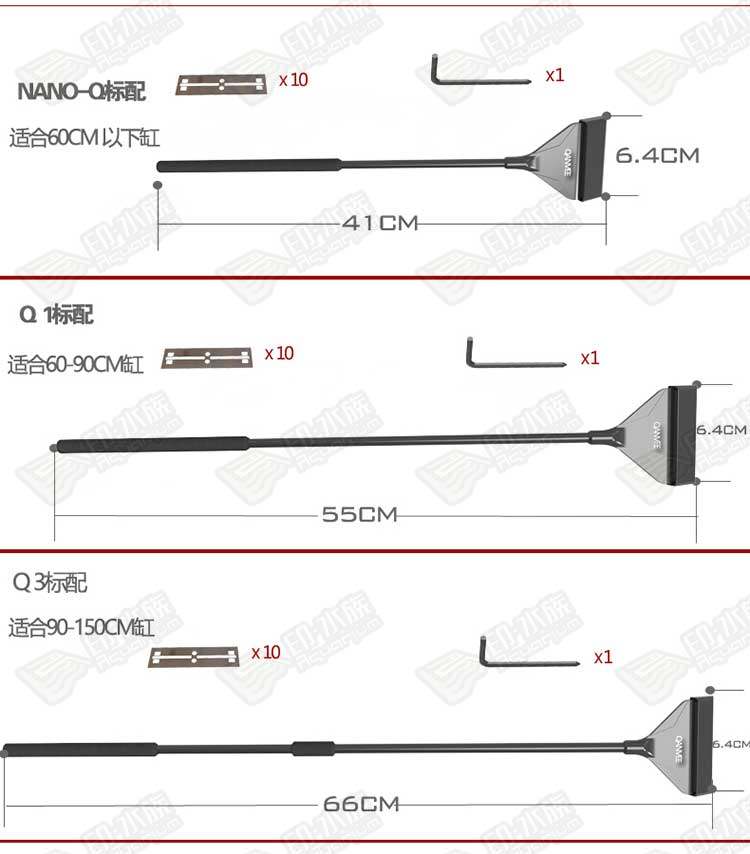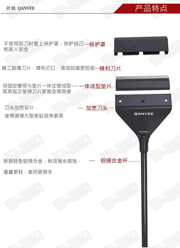1、刮藻刀只能适用于玻璃平面,亚克力材质或弧面鱼缸不能使用。