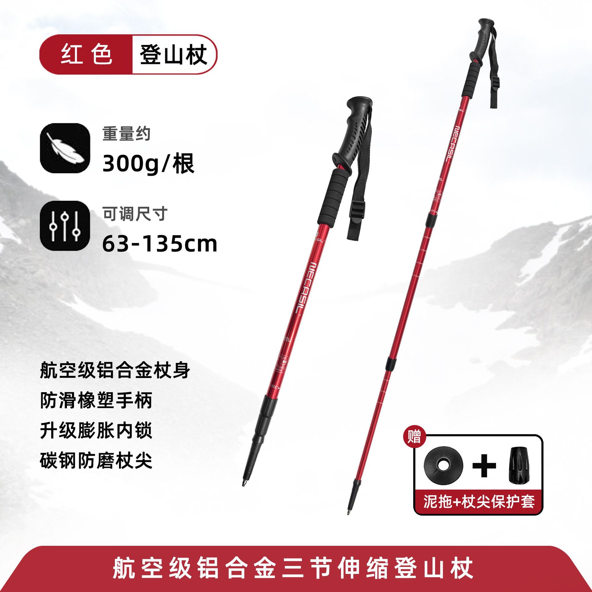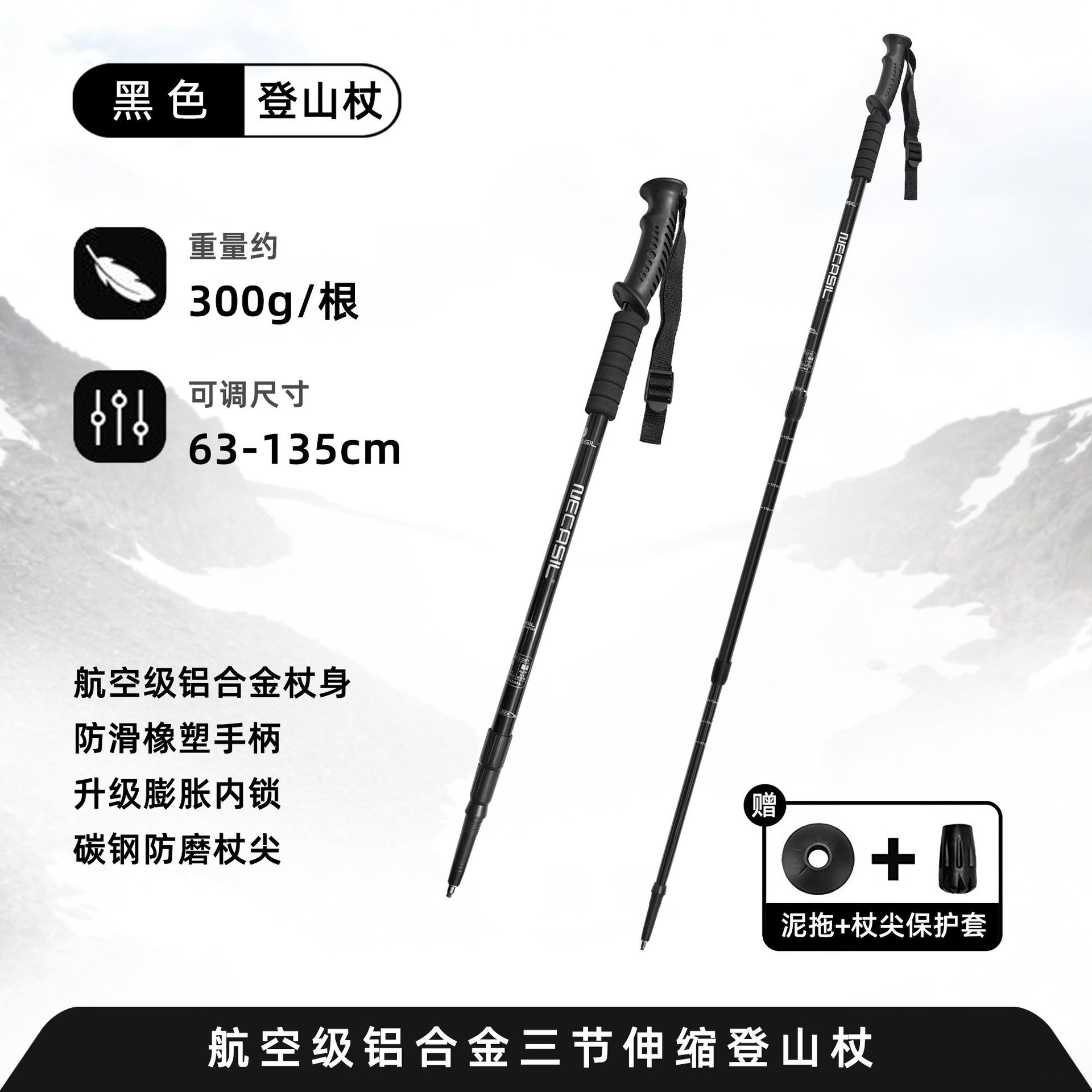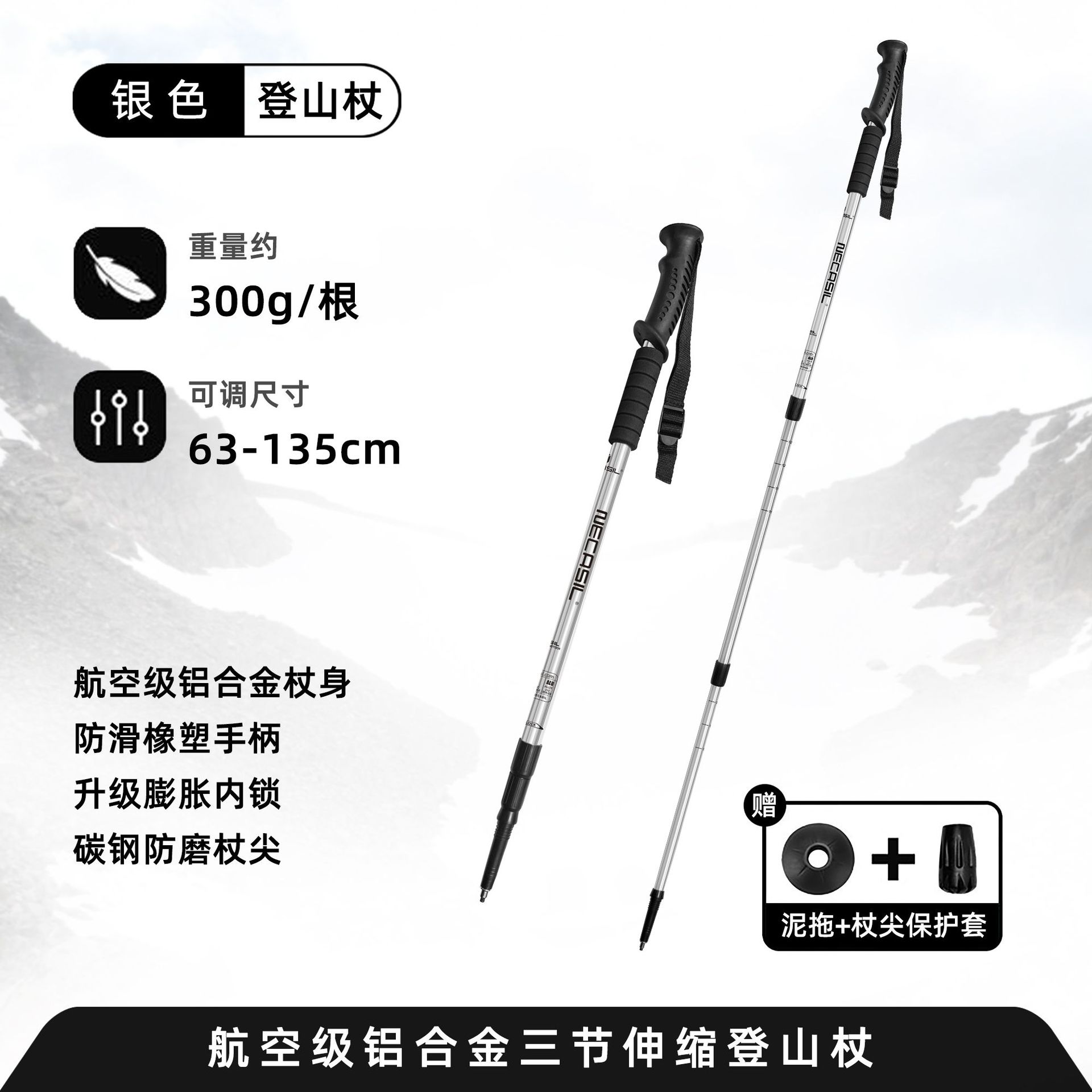 内含:登山杖*1,小泥拖*1,圆脚套*1,自封袋*1