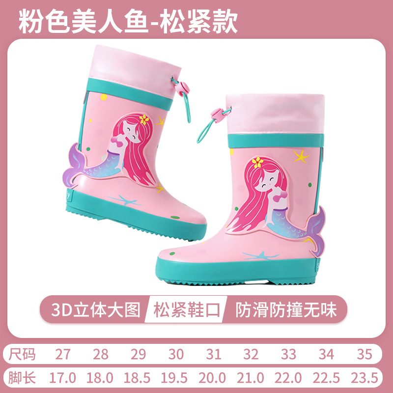 Mu Meng 어린이 장화 두꺼운 미끄럼 방지 통기성 유치원 초등학생 중형 고무 장화 보 어린이 워터 장화