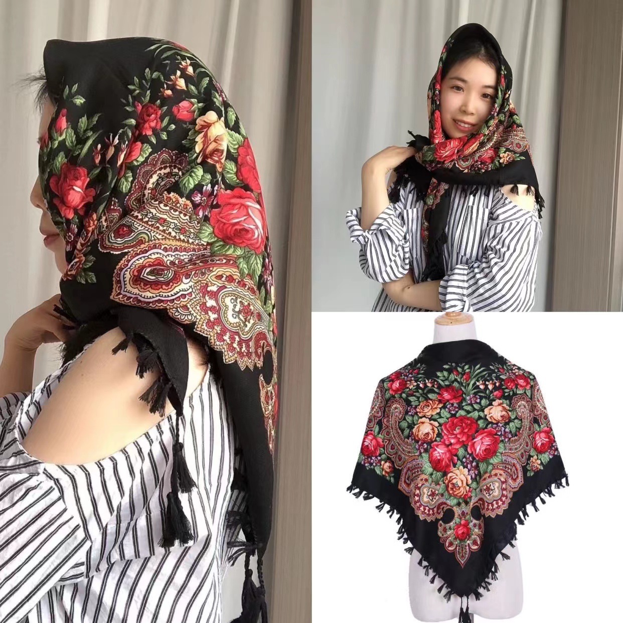 민족 스타일 면화 머리 스카프 여성 봄, 여름 이슬람 Baotou 스카프 목도리 복고풍 인쇄 90 작은 사각형 스카프 삼각형 스카프스토어 가기