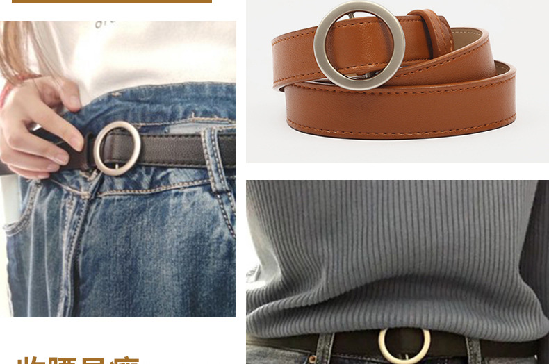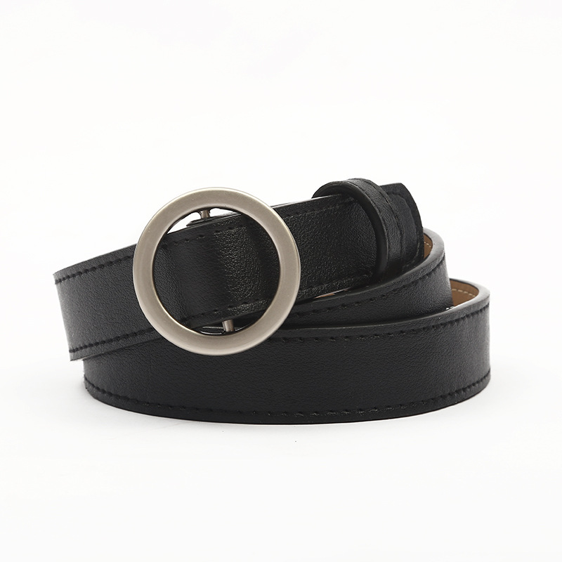 새로운 숙녀 패션 트렌드 라운드 버클 비 다공성 학생 청바지 캐주얼 벨트 간단한 조커 얇은 벨트 도매스토어 가기
