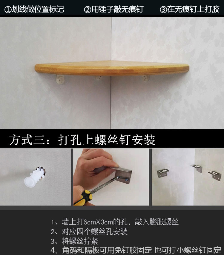 대나무 파티션 코너 벽걸이 벽 스토리지 랙 벽걸이 코너 삼각형 욕실 주방 수납 비 펀치 스토리지 랙