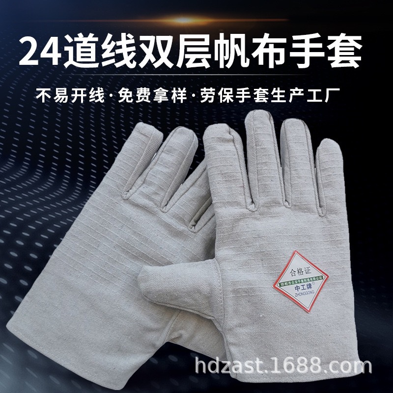 【品名】白甲24线双层全衬帆布手套
