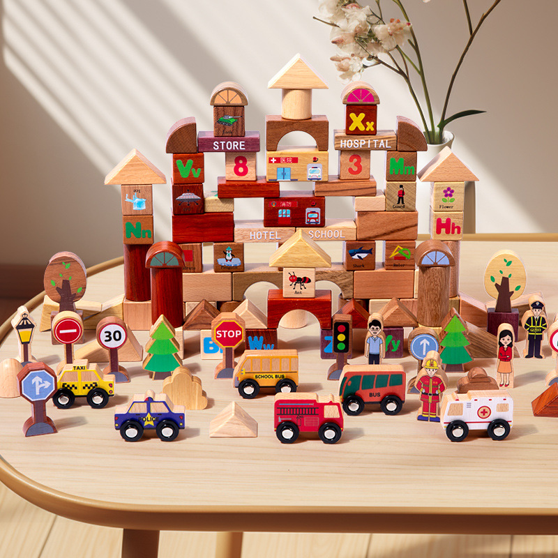 产品名称:木盒装118颗城市交通积木 3.01kg