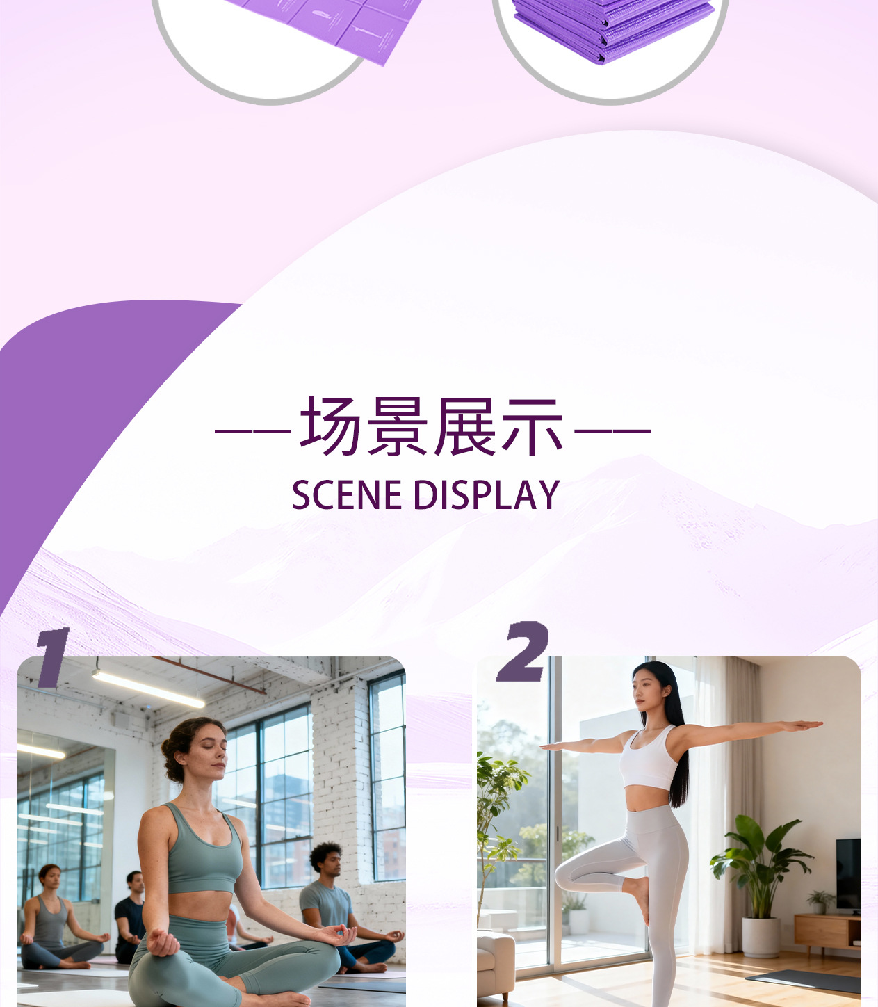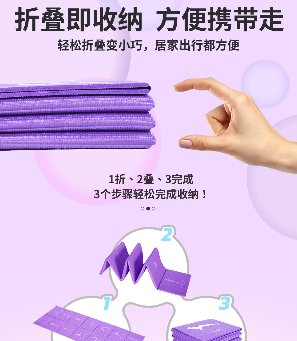 • 6mm 보라색 인쇄 접이식 매트 173*61cm(흰색 재사용 가능한 가방과 함께 제공)