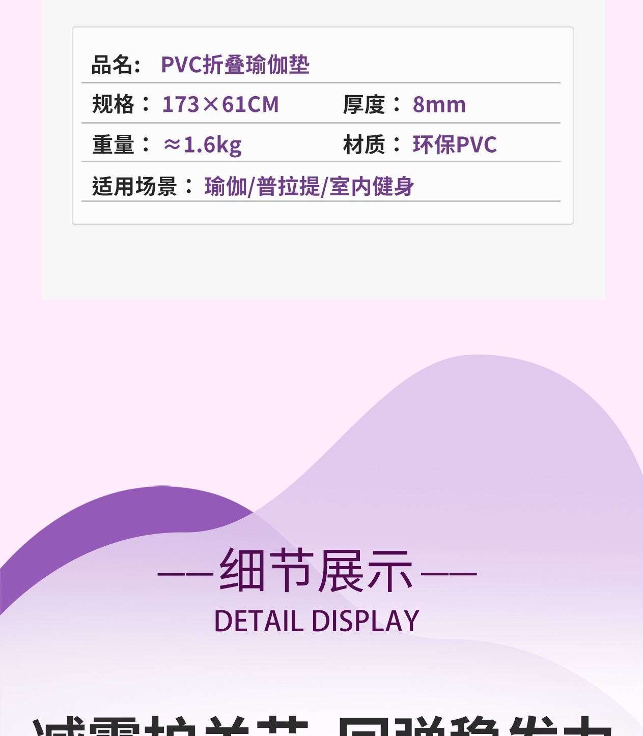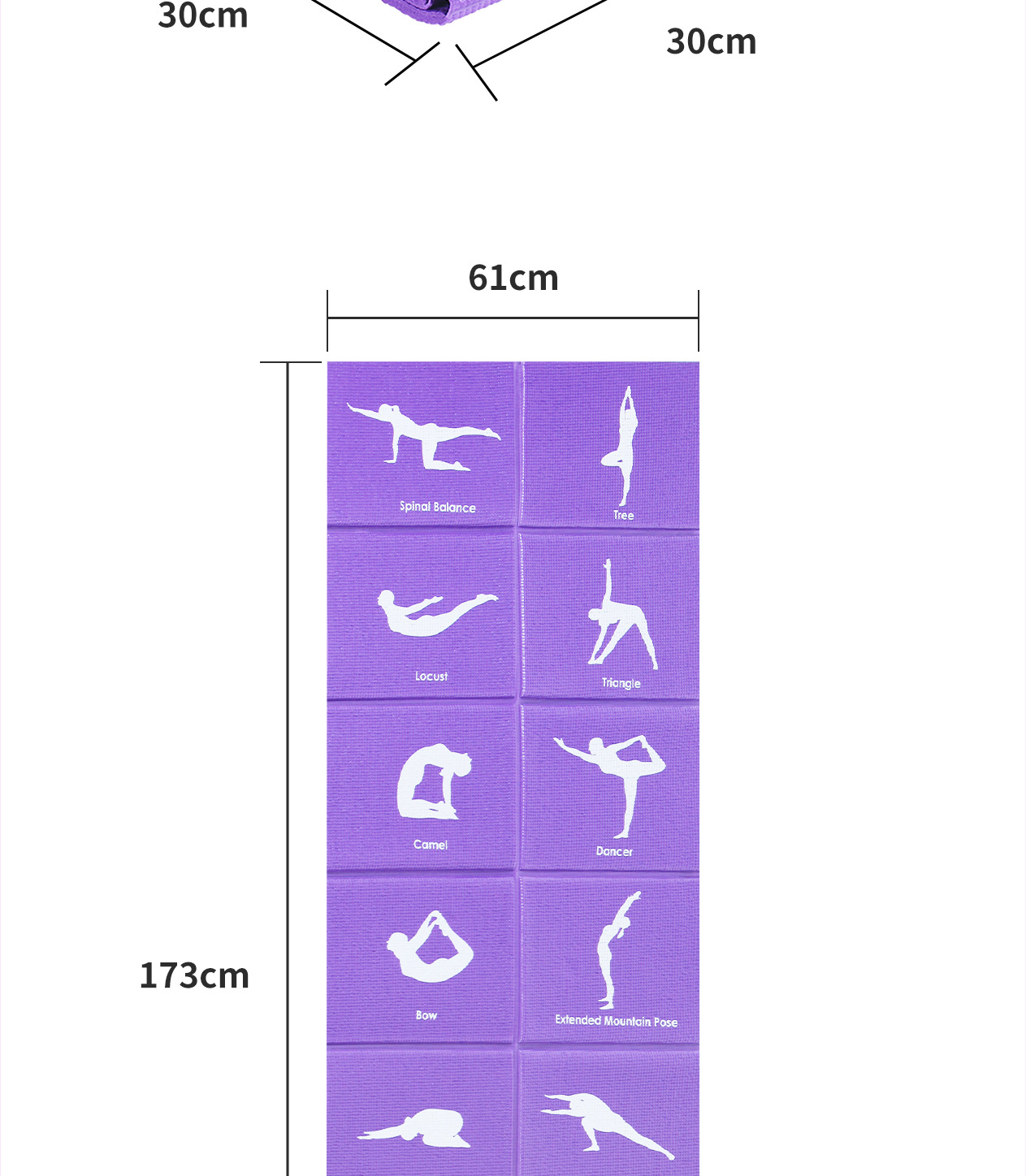 • 6mm 보라색 일반 접이식 매트 173*61cm(흰색 재사용 가능한 가방 포함)