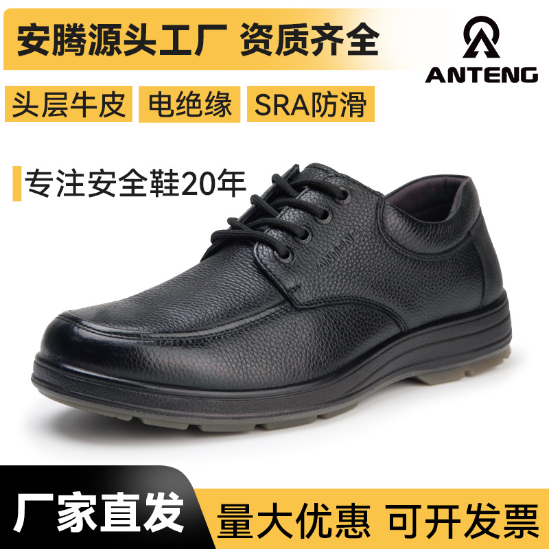 ANTENG 안텡 A8530 비즈니스 및 행정용 미끄럼 방지 안전화, 1층 소가죽 캐주얼 가죽신발, 전기 절연 6KV
