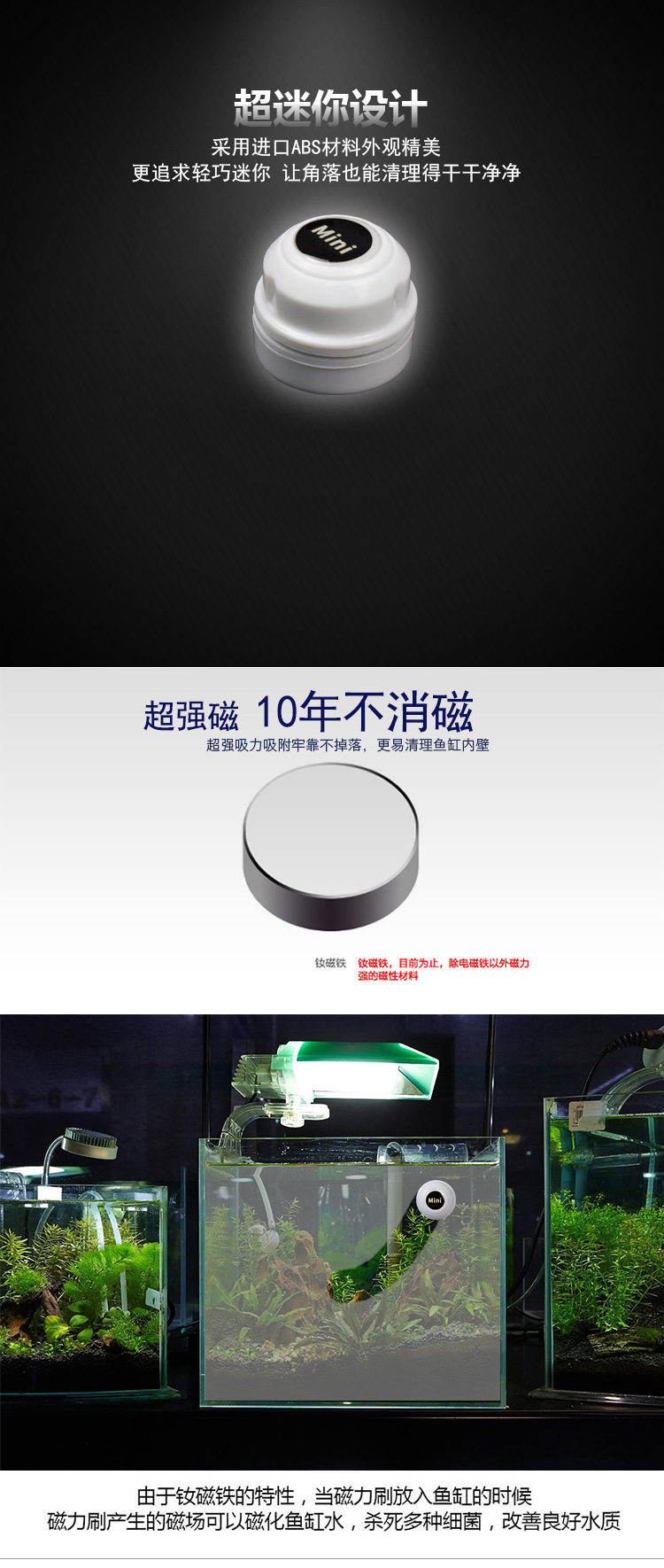2018重金打造新款迷你鱼缸磁力刷,适合玻璃厚度8MM以内的鱼缸使用,