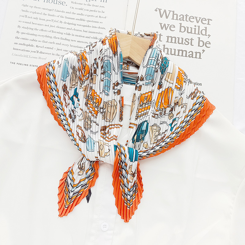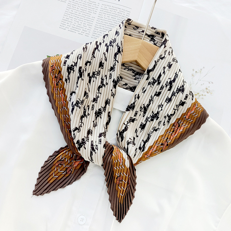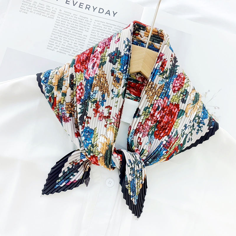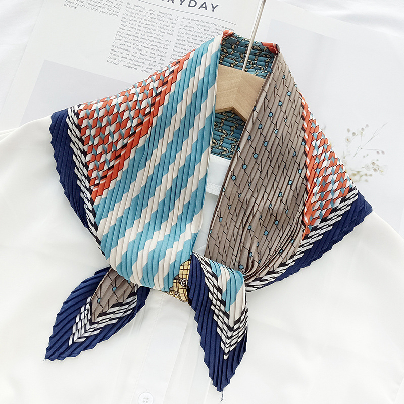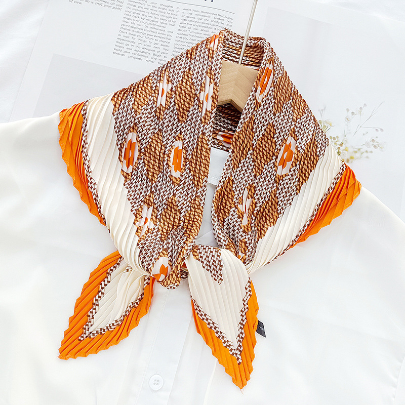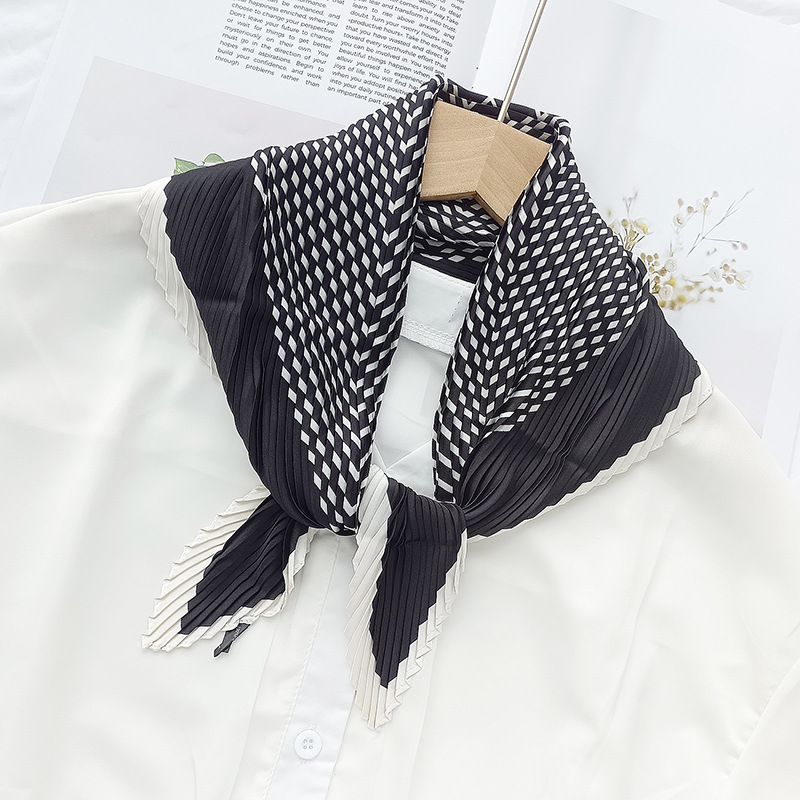 새로운 다이아몬드 주름 작은 사각형 여성의 한국 패션 아트 장식 작은 스카프 스카프 여성 제조 업체의 한국어 버전 도매