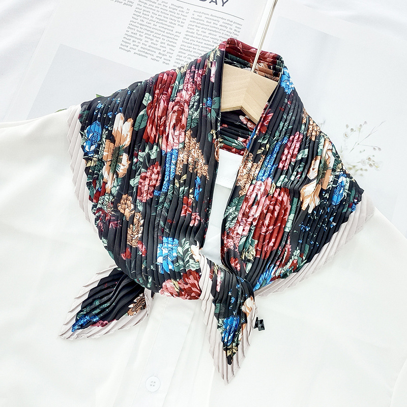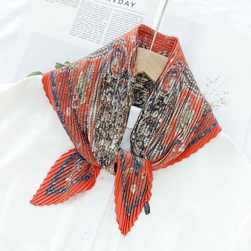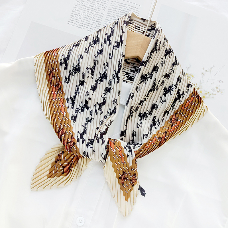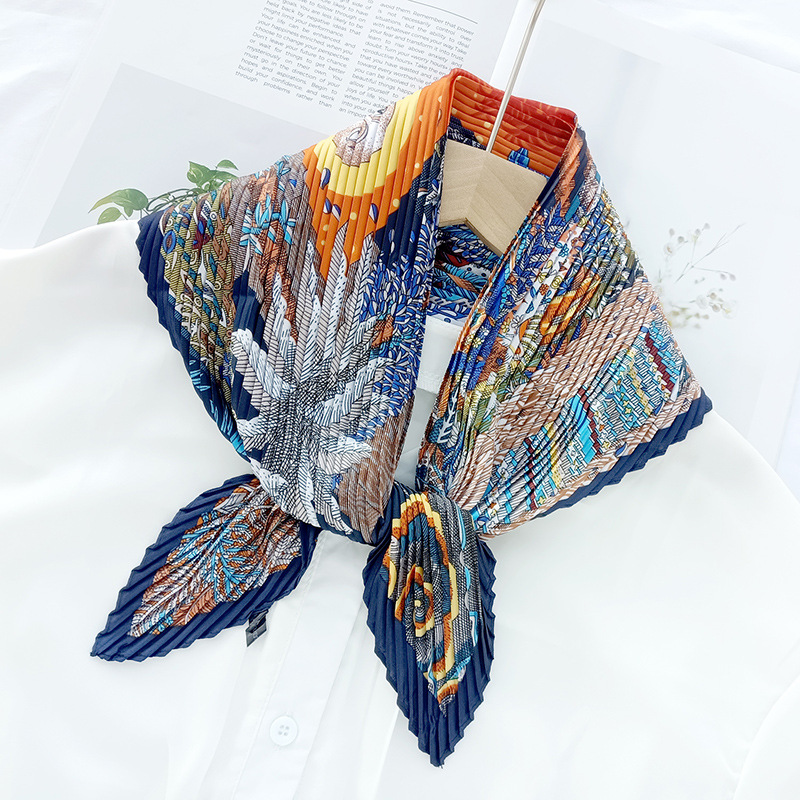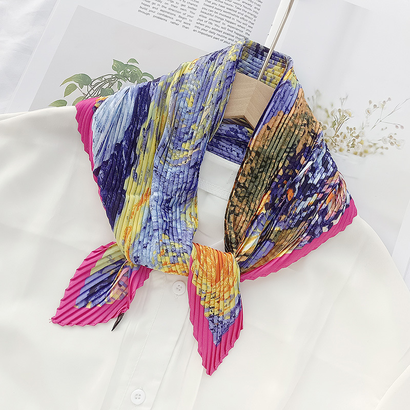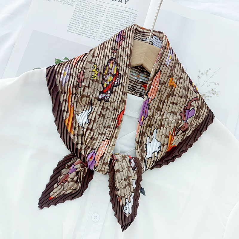 새로운 다이아몬드 주름 작은 사각형 여성의 한국 패션 아트 장식 작은 스카프 스카프 여성 제조 업체의 한국어 버전 도매