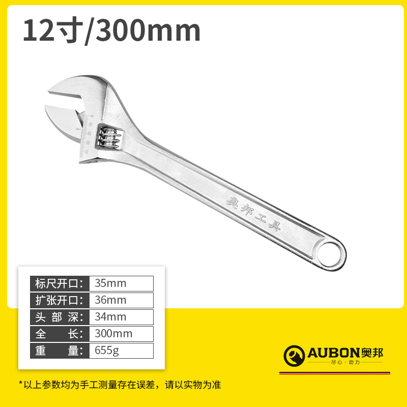 • Aubon 크롬 도금 조절 렌치 375mm(2/박스, 20/피스, 1.423 kg/piece)