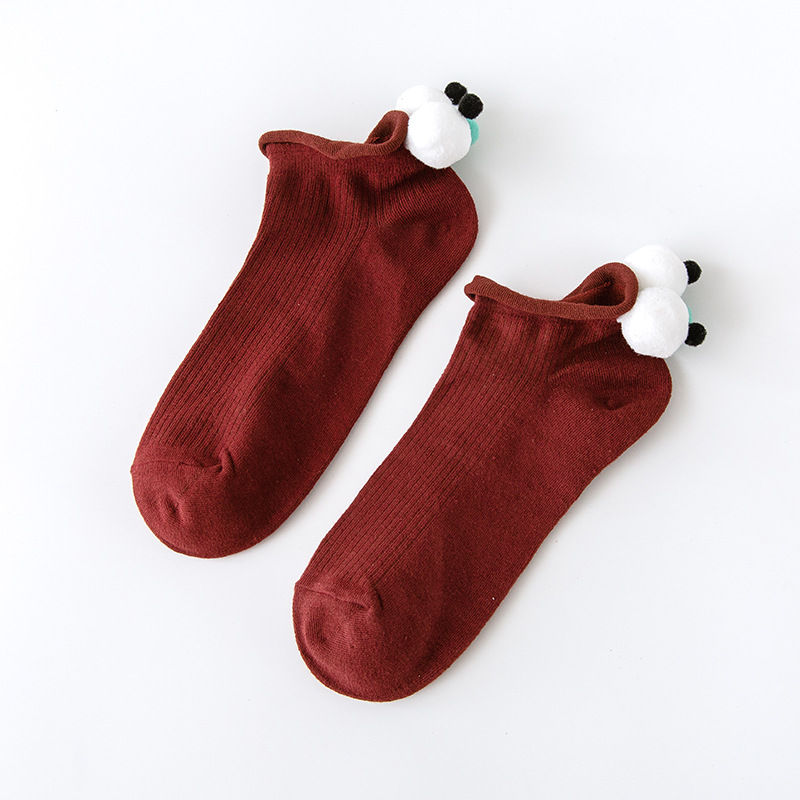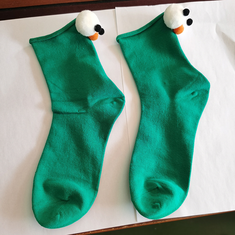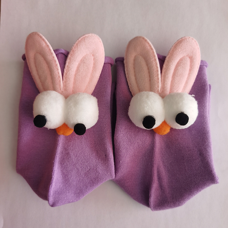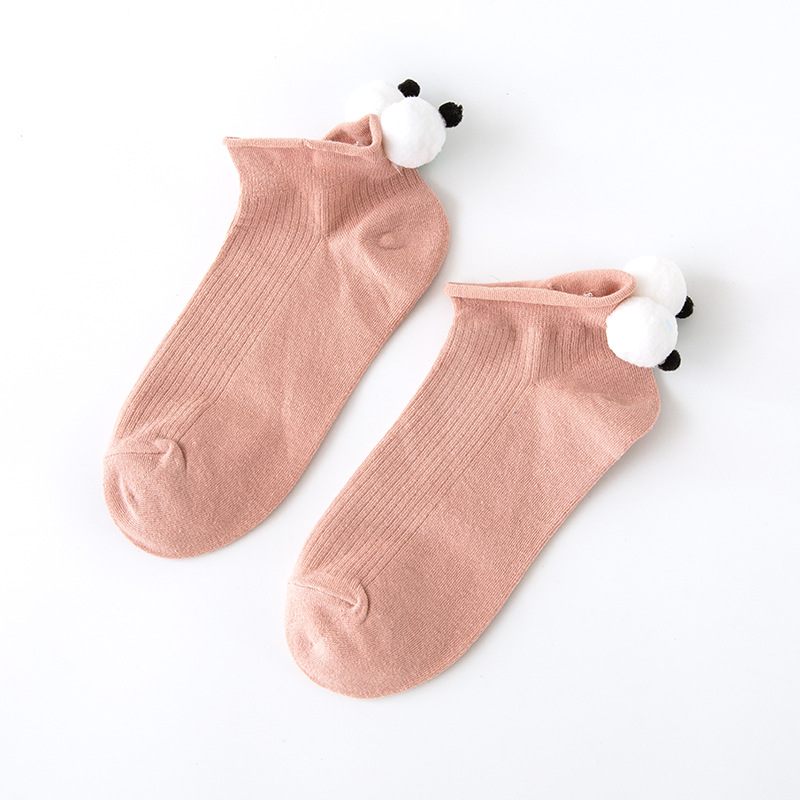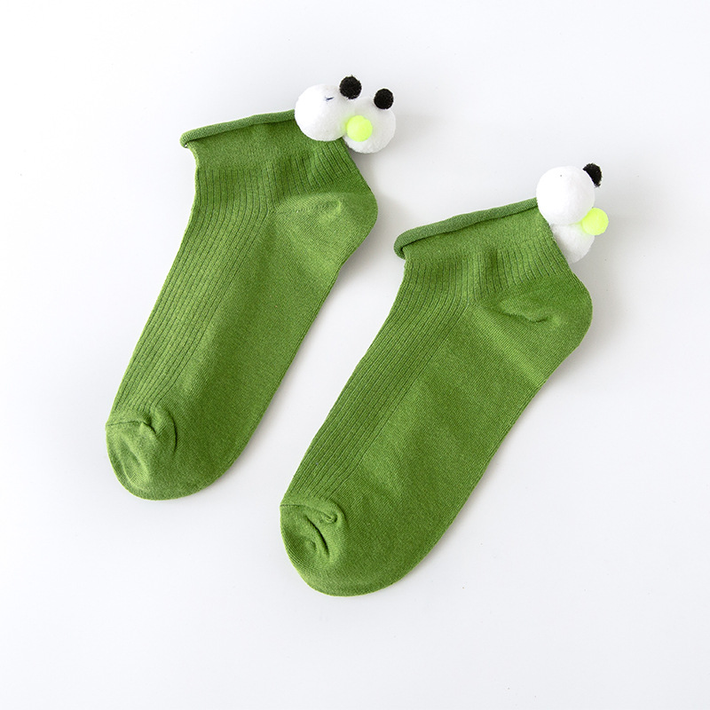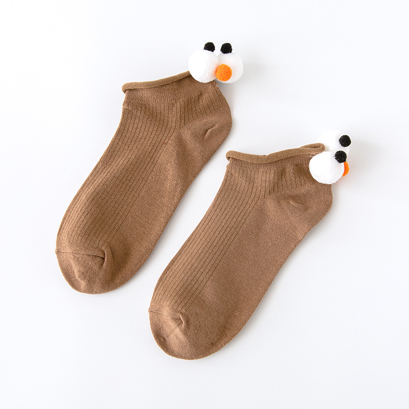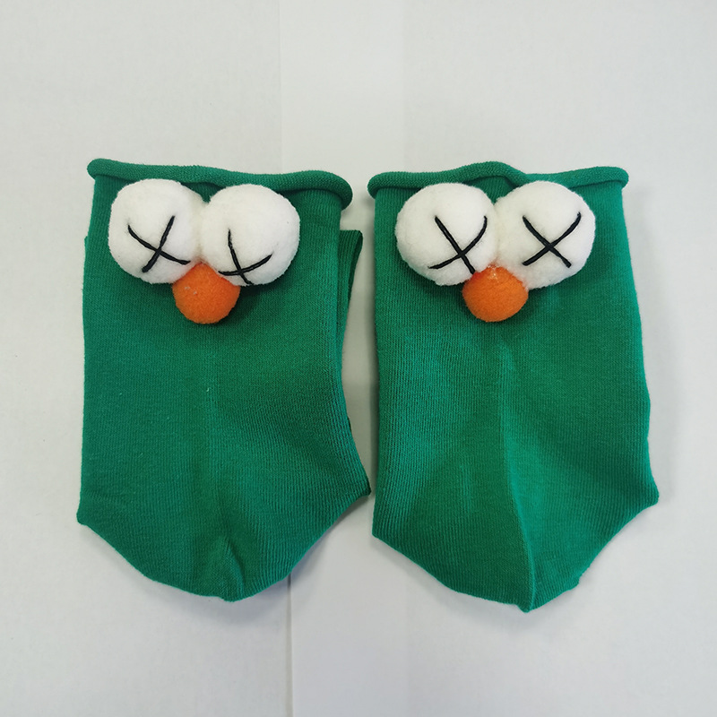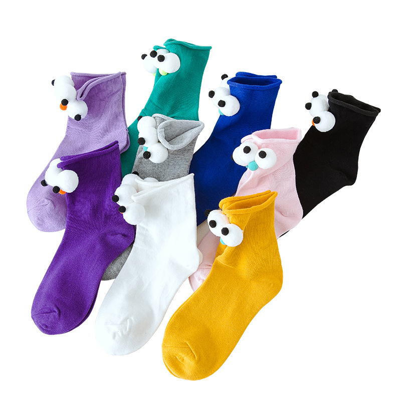 袜子厂家批发 茶颜女袜卡通创意大眼睛棉短袜 糖果色卷边袜