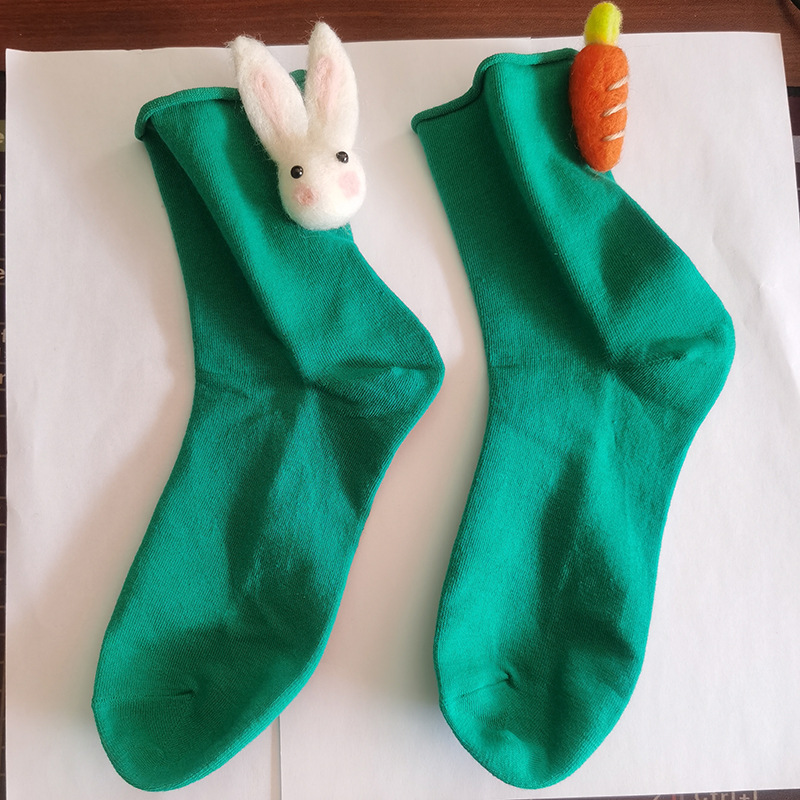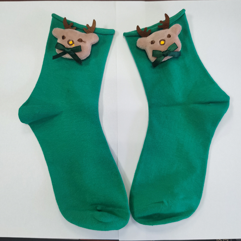 차얀 만화 크리 에이 티브 큰 눈 무 토끼 엘크 크리스마스 트리 면 양말 캔디 컬러 컬 미드 양말 여성용스토어 가기