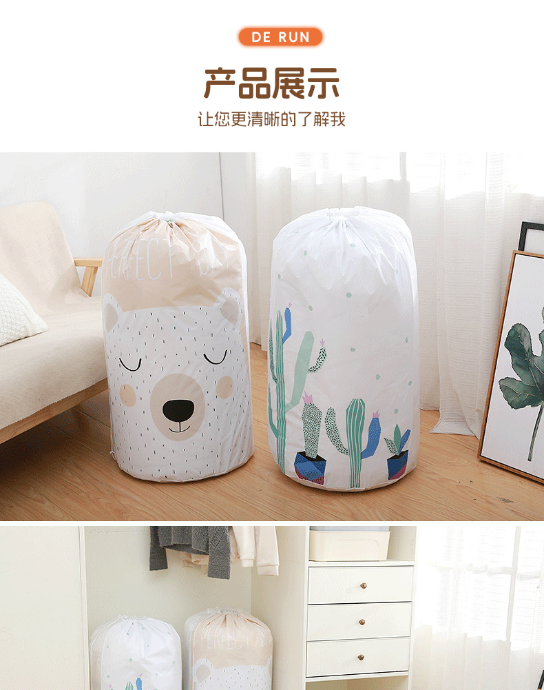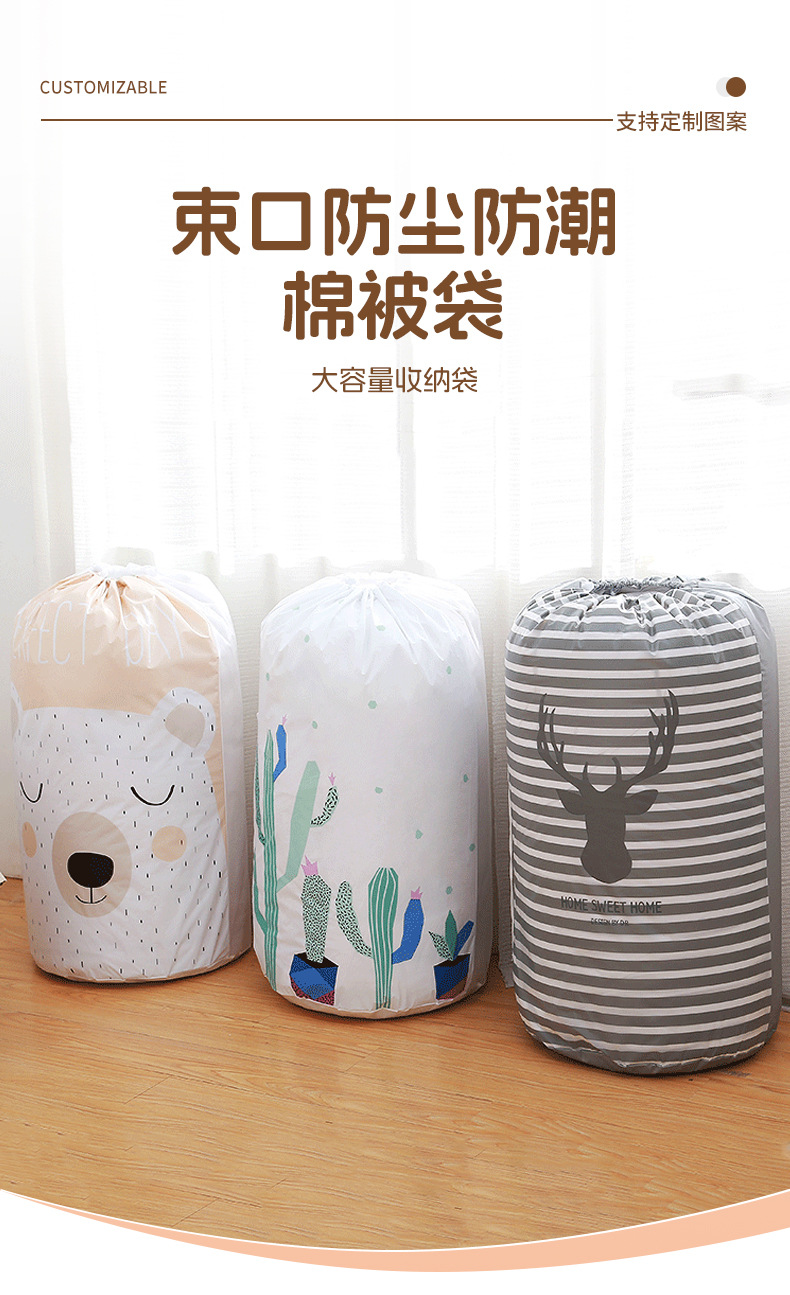 방수 조임끈 가방, 두꺼운 원형 면 이불 보관 가방, 이사 짐 정리, 의류 보관 조임끈 가방