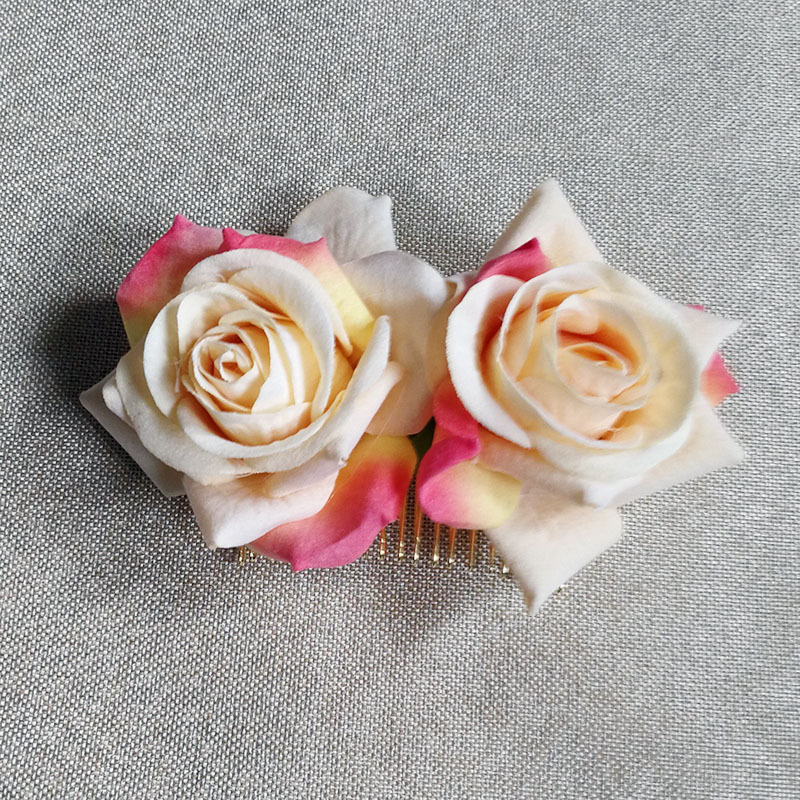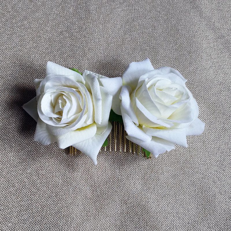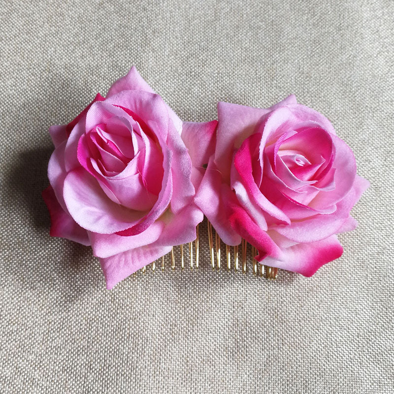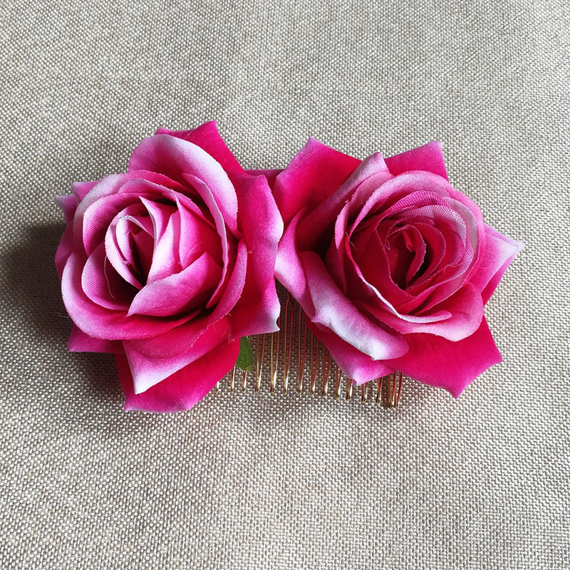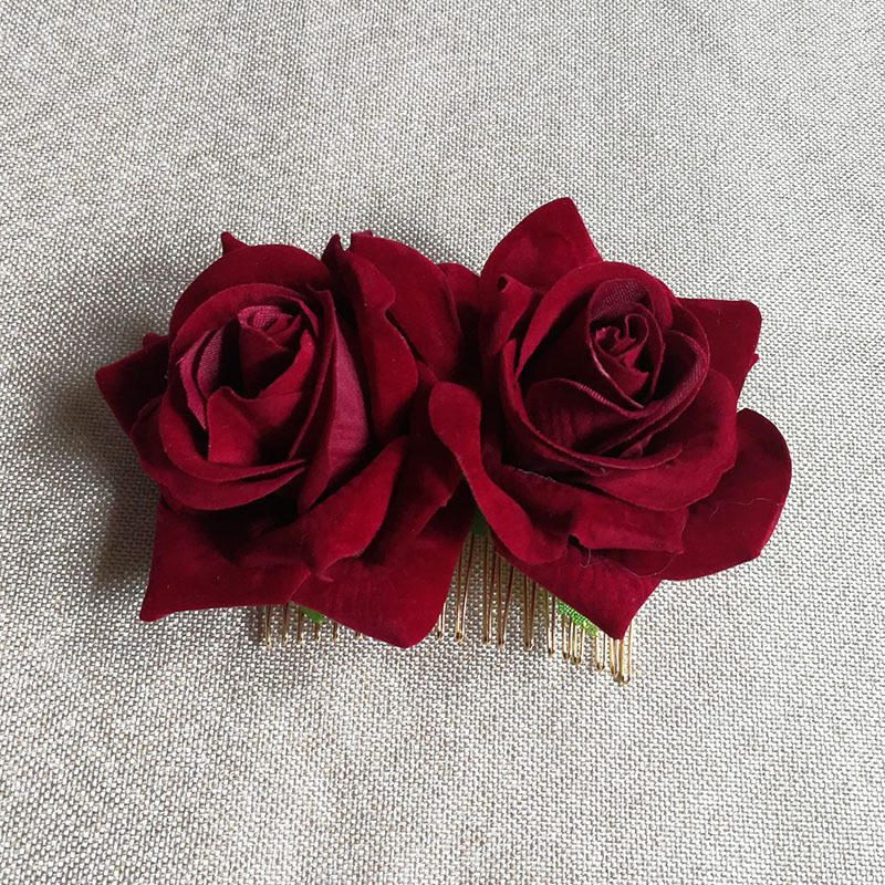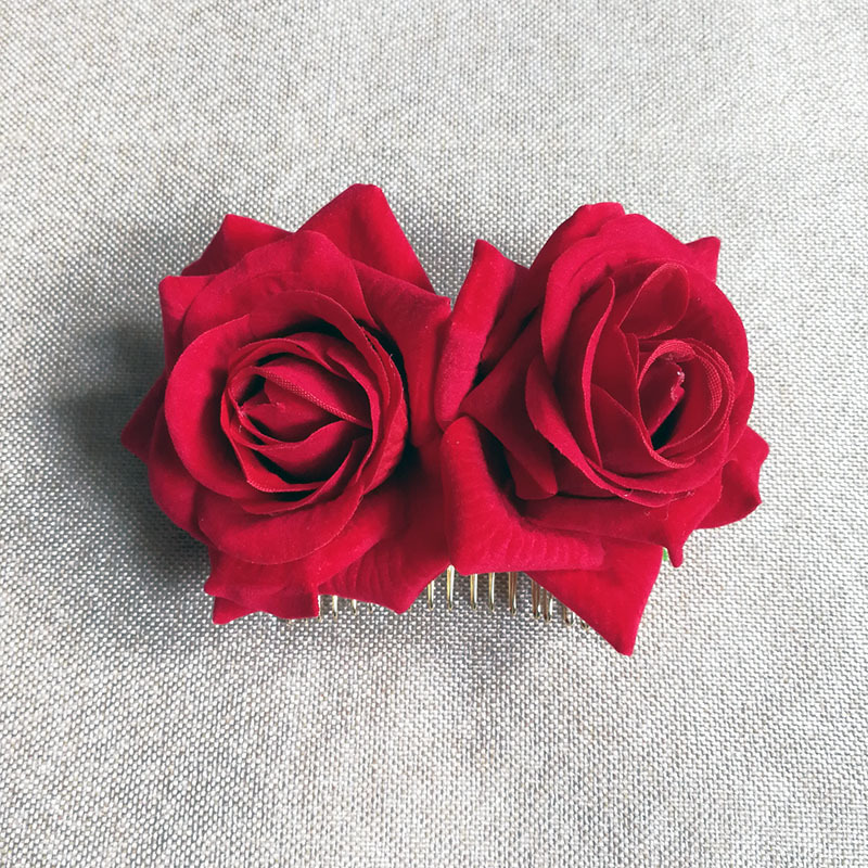 速卖通亚马逊热销绒布玫瑰花发夹 双朵玫瑰花发梳 红色玫瑰花发饰