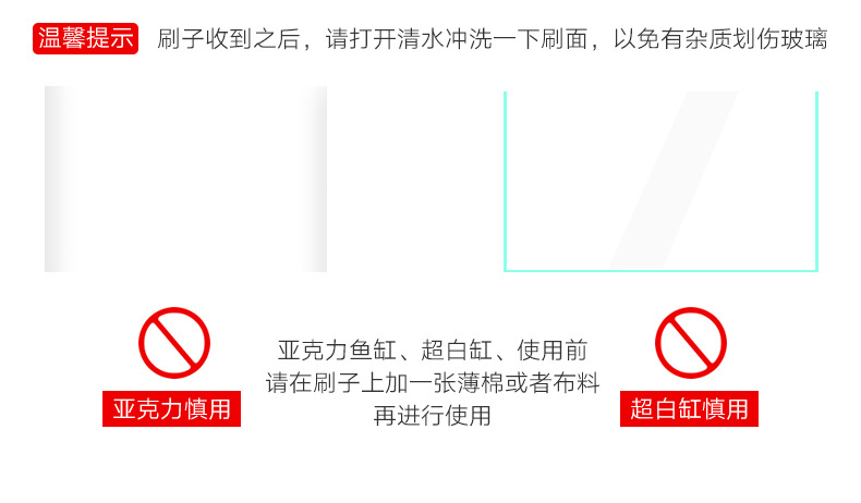 1.适用于40cm-1.5m,玻璃厚度4-25mm的鱼缸(不同鱼缸适用的磁力刷型号各不相同)