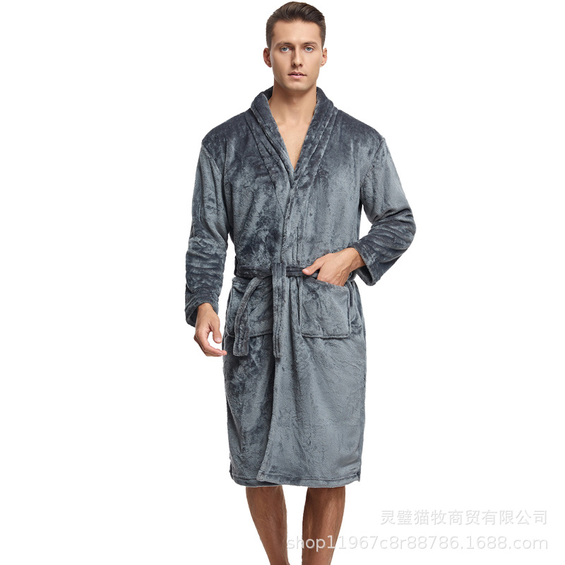 커플의 플란넬 잠옷 두꺼운 가을과 겨울 긴 소매 초대형 산호 양털 목욕 가운 남성과 여성을위한 중간 길이 잠옷 플러스 사이즈스토어 가기