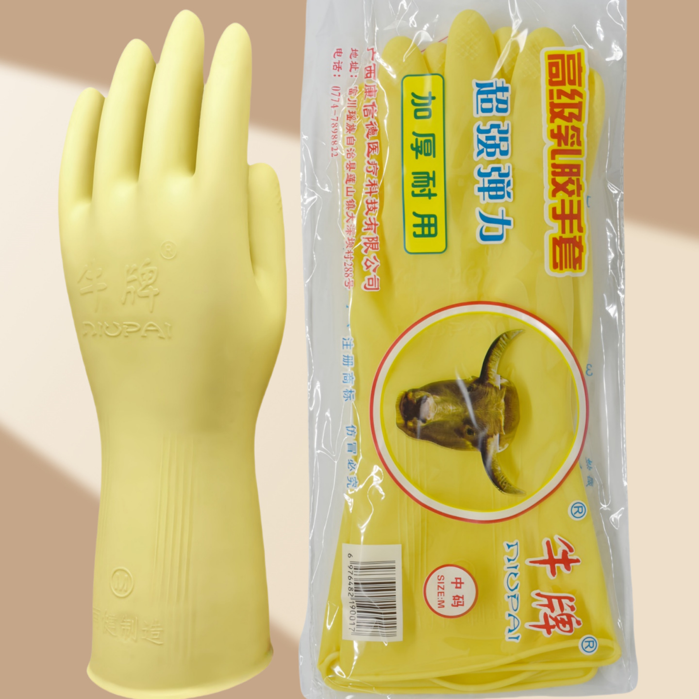 소 브랜드 라텍스 장갑 광동 암소 브랜드 두꺼운 가정용 세척 및 세탁 고무 장갑 고무 장갑 쇠고기 텐던 장갑스토어 가기