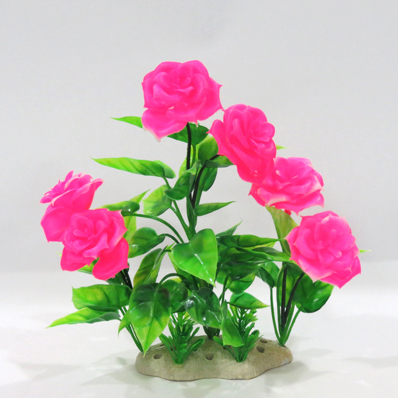 새로운 어항 풍경 시뮬레이션 물 잔디 플라스틱 물 반얀 장미 풍경 수족관 장식 시뮬레이션 식물 장식품