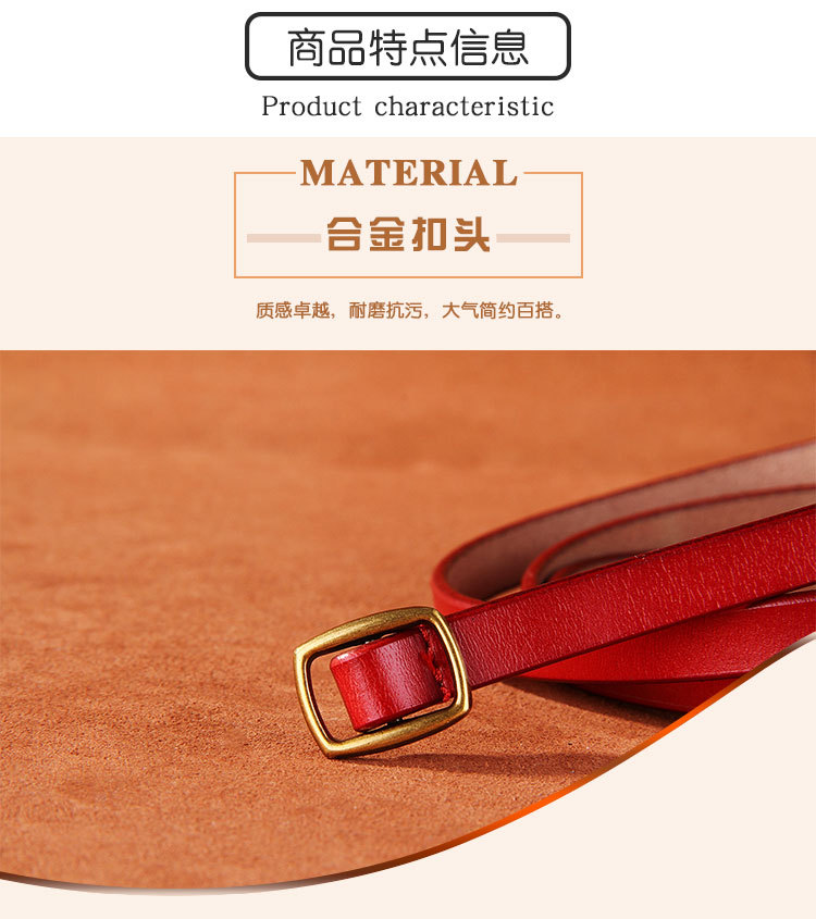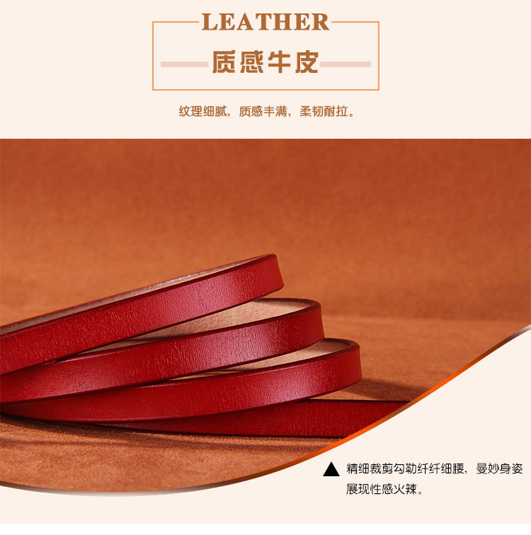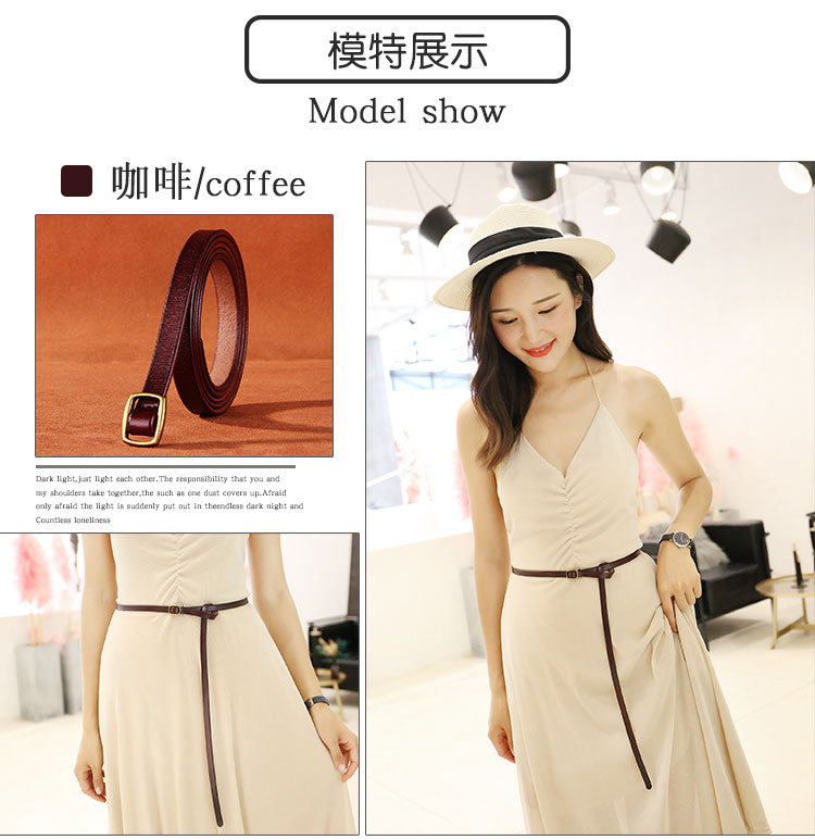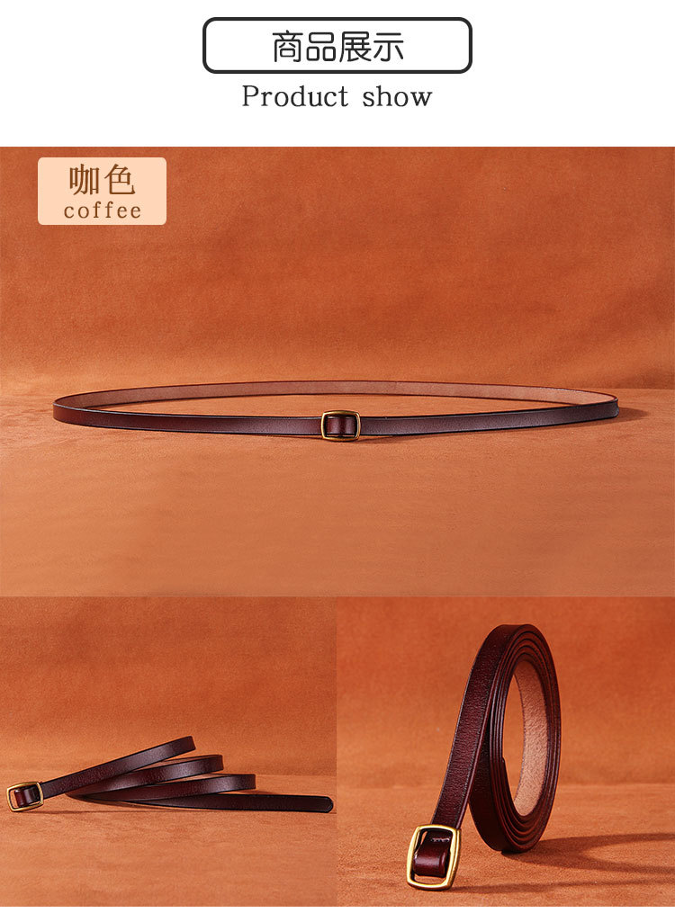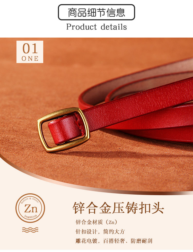 새로운 여성의 정품 가죽 한국식 모든 경기 간단한 얇은 벨트 복고풍 작은 일본 버클 소가죽 장식 원피스 좁은 스트랩