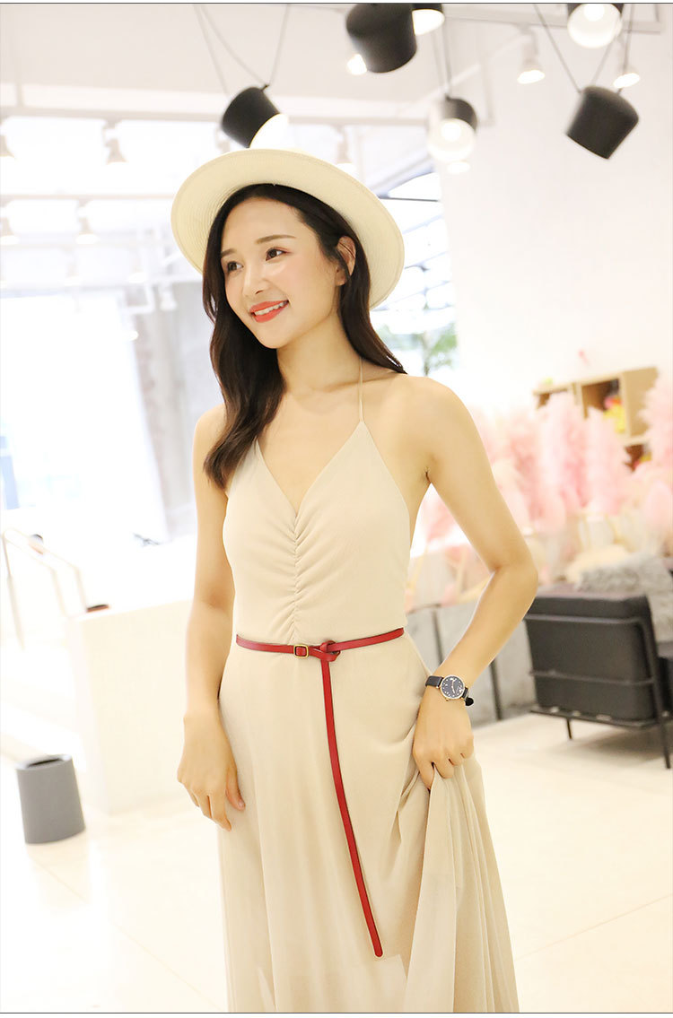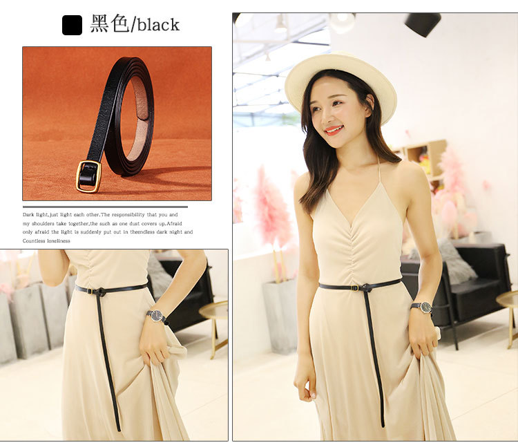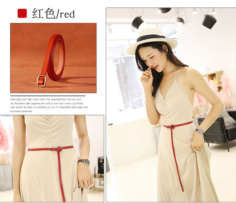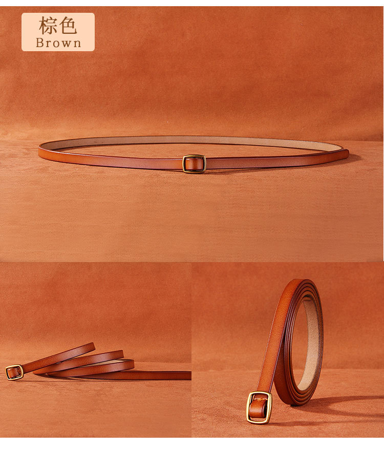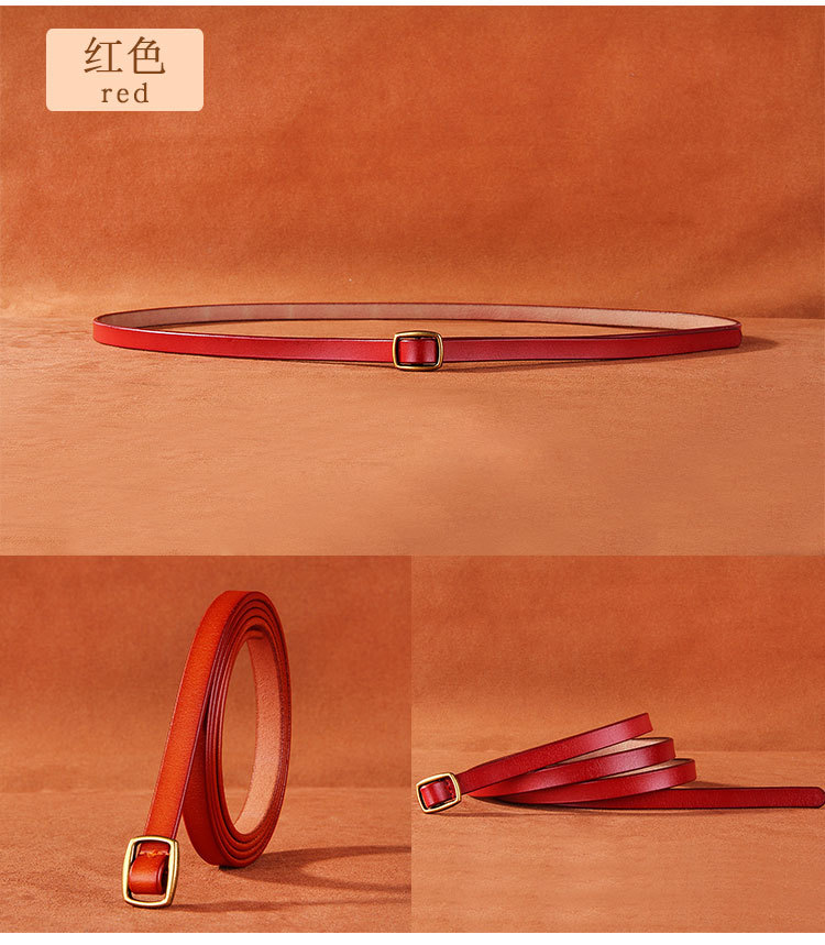 새로운 여성의 정품 가죽 한국식 모든 경기 간단한 얇은 벨트 복고풍 작은 일본 버클 소가죽 장식 원피스 좁은 스트랩