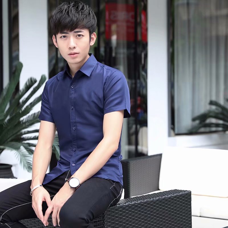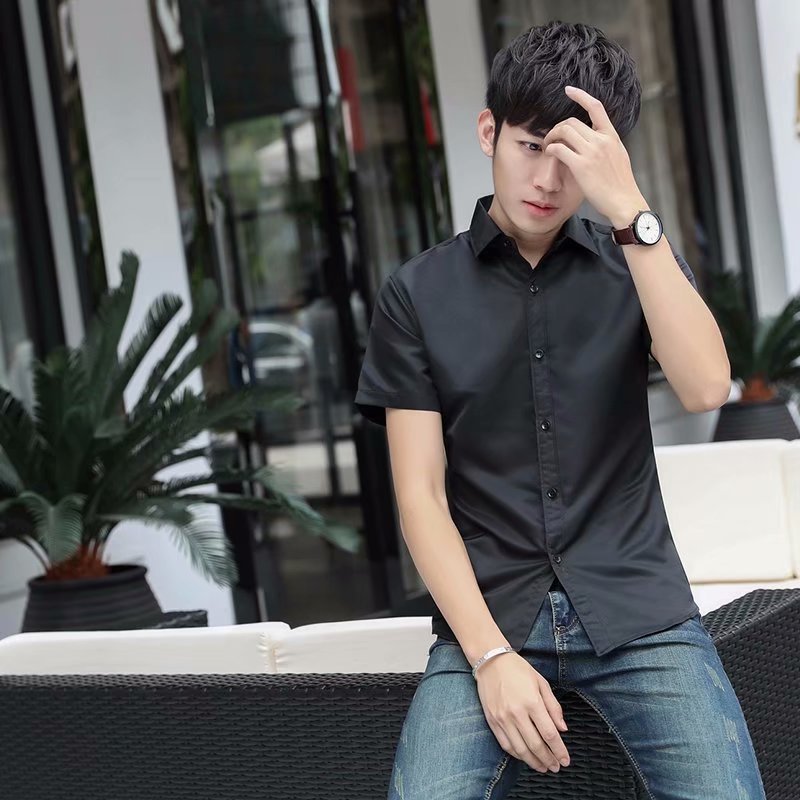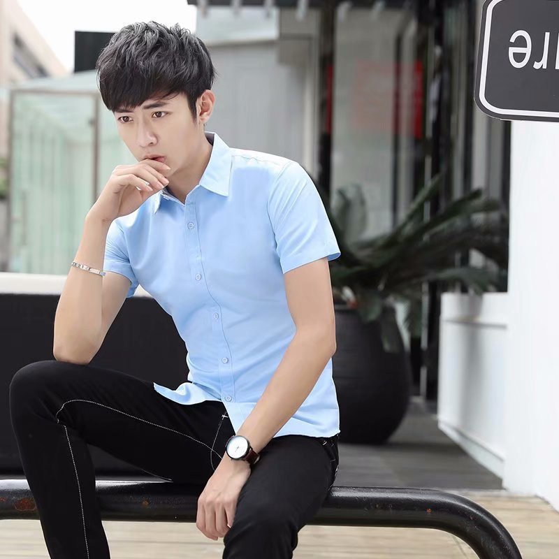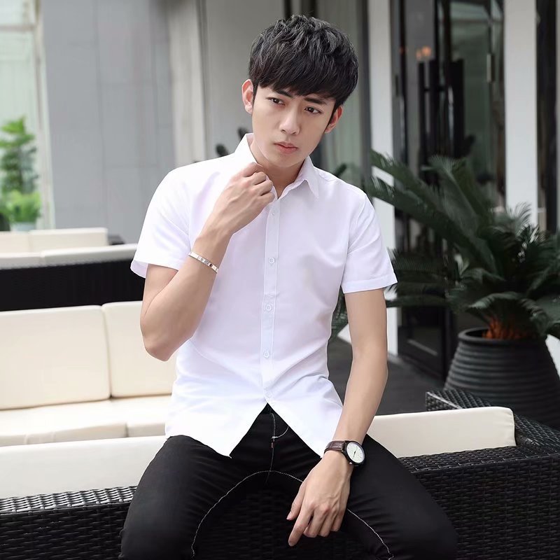 2022 여름 신상 반팔 전문 반팔 셔츠 화이트 남자 셔츠 슬림 단색 인치 셔츠 사업 도매스토어 가기