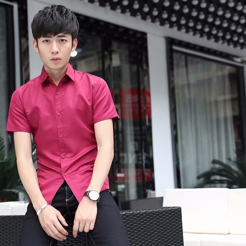 2022 여름 신상 반팔 전문 반팔 셔츠 화이트 남자 셔츠 슬림 단색 인치 셔츠 사업 도매
