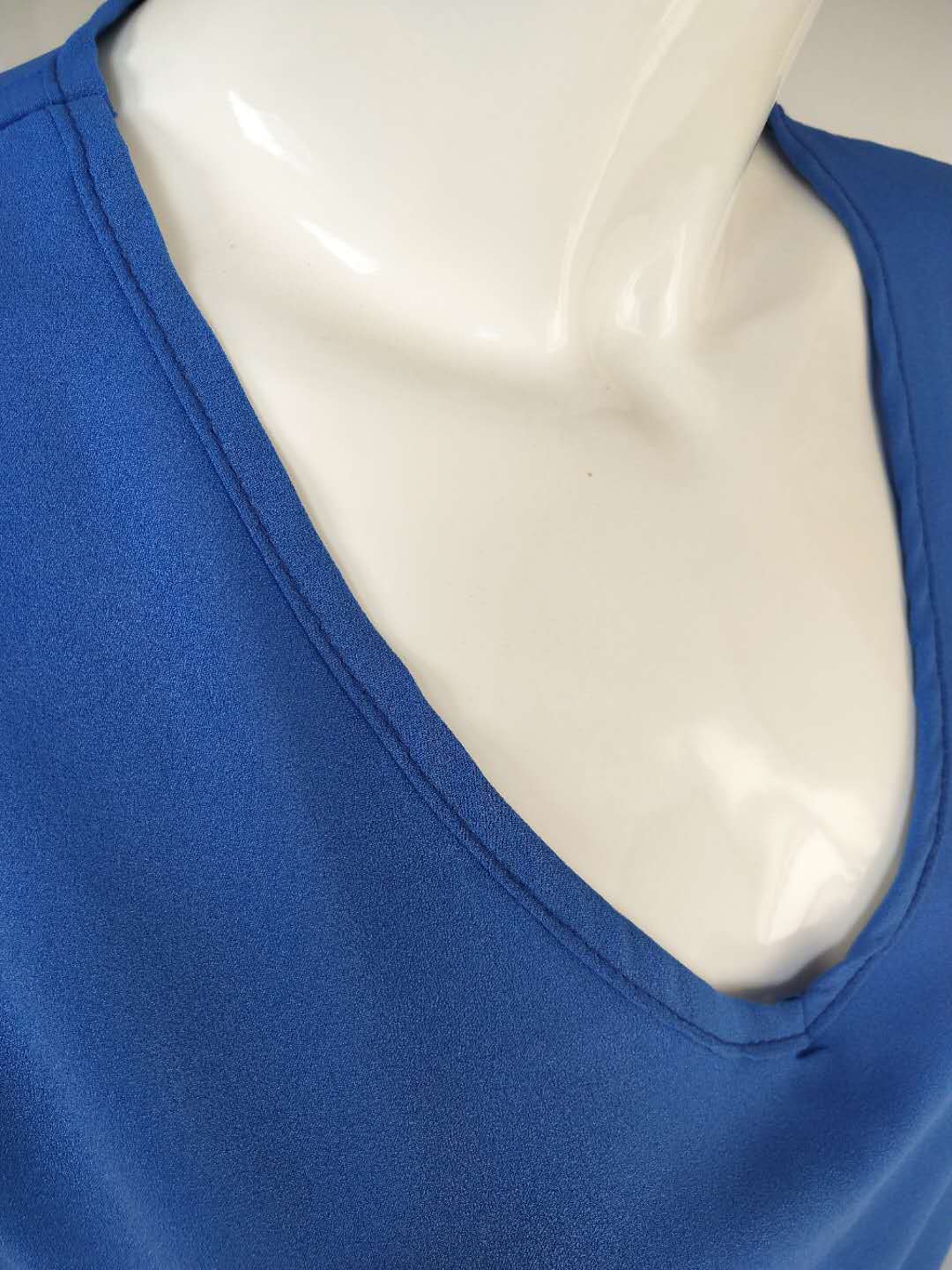 유럽과 미국의 아마존 새 여름 여성 느슨한 V 넥 메쉬 스플 라이스 솔리드 컬러 셔츠 쉬폰 셔츠 벨 슬리브스토어 가기
