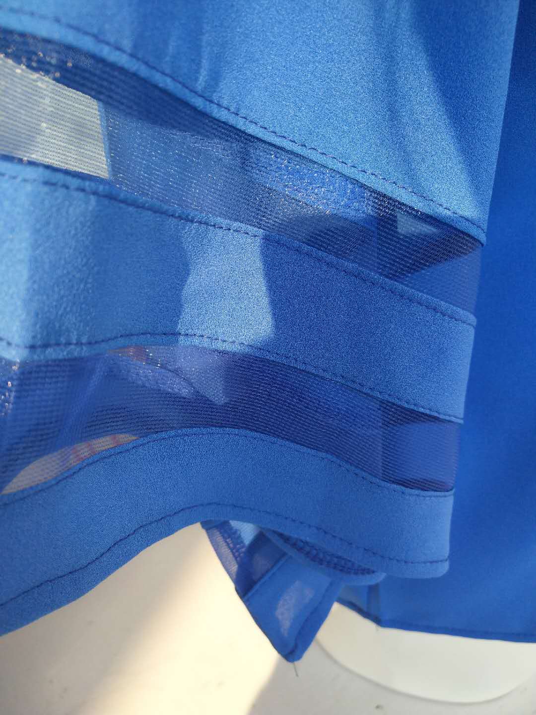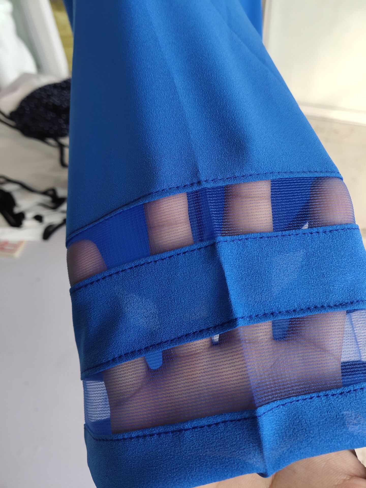 유럽과 미국의 아마존 새 여름 여성 느슨한 V 넥 메쉬 스플 라이스 솔리드 컬러 셔츠 쉬폰 셔츠 벨 슬리브