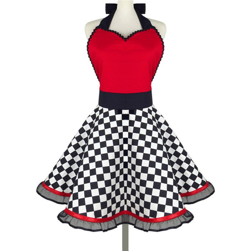빈티지 앞치마 흑백 격자 무늬 레이스 업 순면 크리에이티브 앞치마 가정용 노동 보호 성인용 주방 레이스 업 앞치마스토어 가기