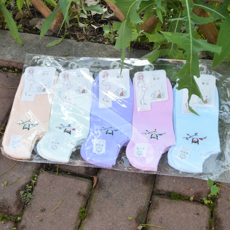 여자의 순면 사랑 새 보이지 않는 양말 스포츠 만화 양말 캔디 컬러 캐주얼 양말 봄과 가을 새로운 도매스토어 가기