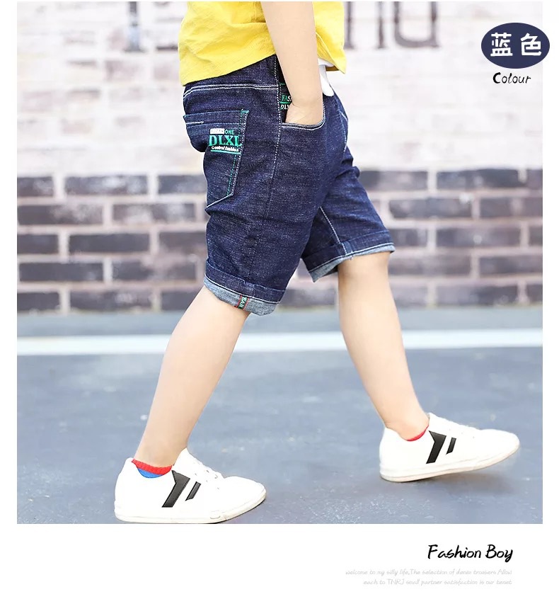 남아 데님 반바지 2023 여름 착용 얇은 중학교 어린이 5 점 바지 유행 여름 바지 느슨한 아동복 캐주얼 바지스토어 가기