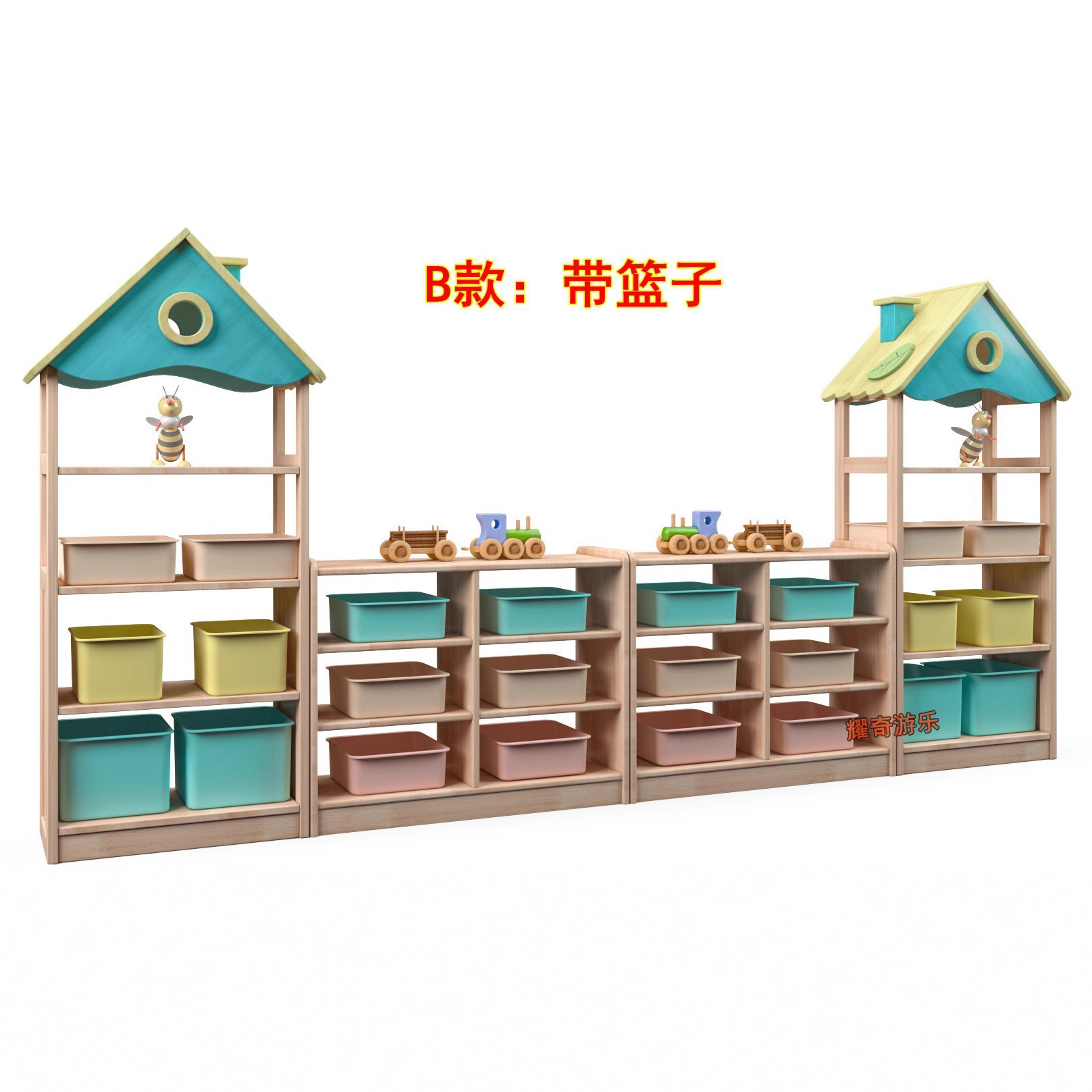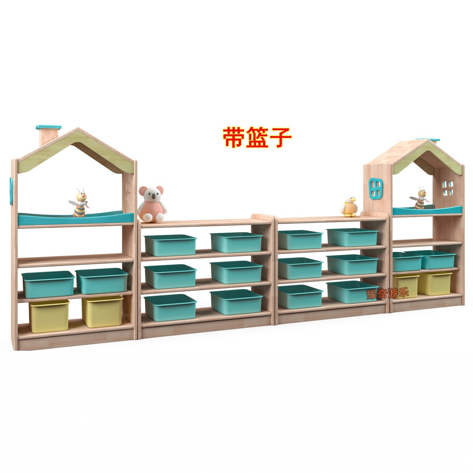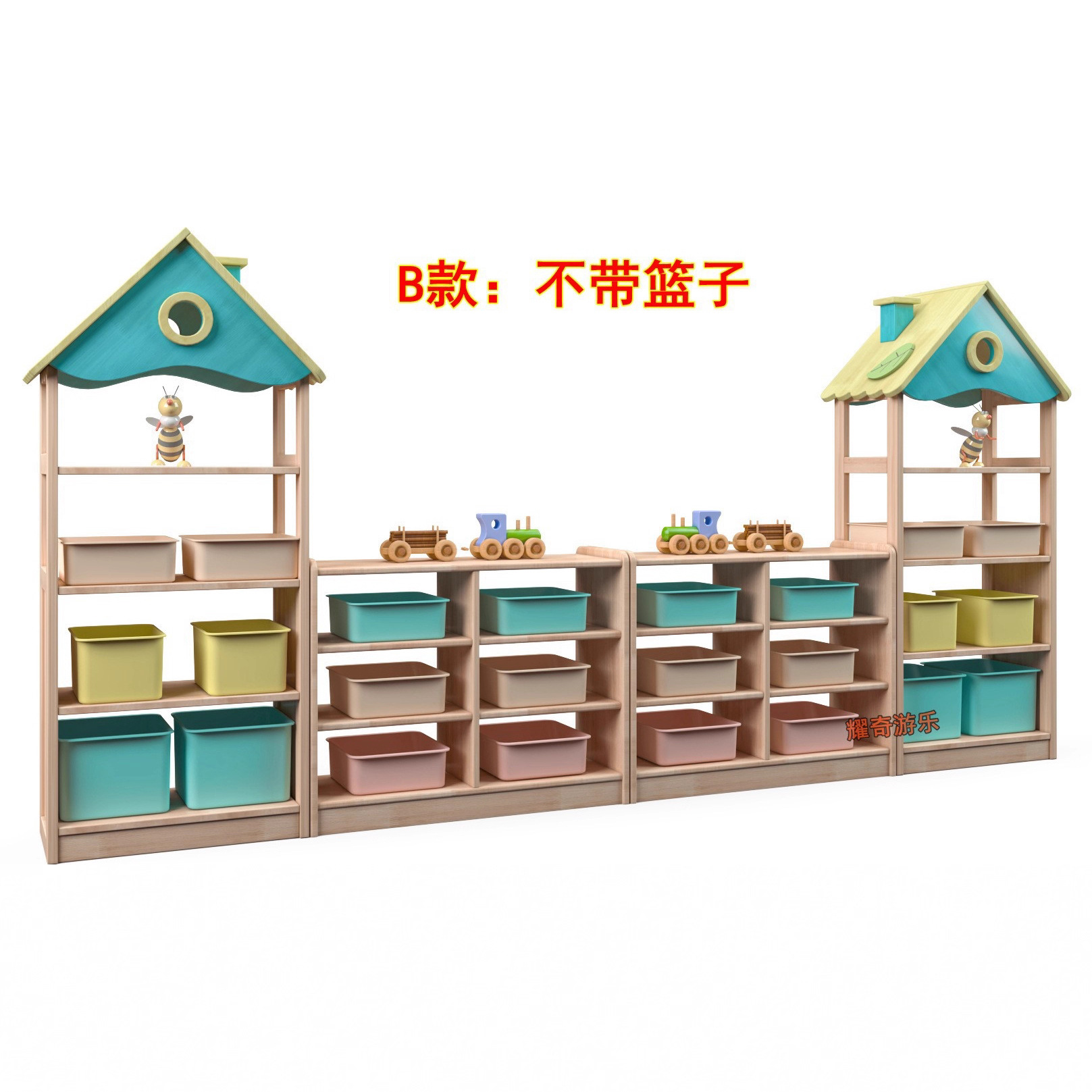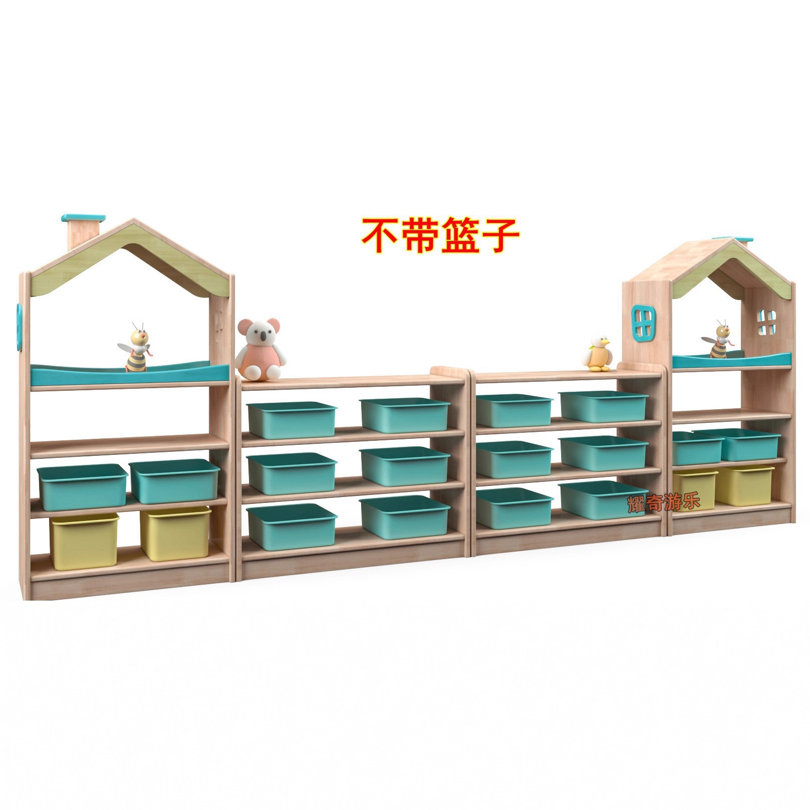 【品名】:橡胶木组合教具柜(价格不含柜子上的玩具)