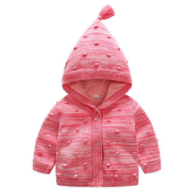 2024 어린이 의류 가을 새로운 아기 소녀 핑크 더블 니트 스웨터 큰 모자 코트 머리카락 세대