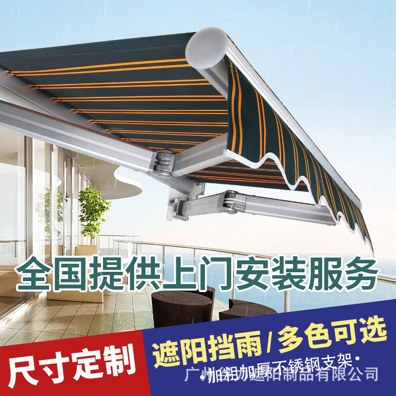 접이식 텔레스코픽 차양막, 발코니 차양막, 가정용 마당 차양막, 방풍 및 방수 기능이 있는 두꺼운 야외용 차양막스토어 가기