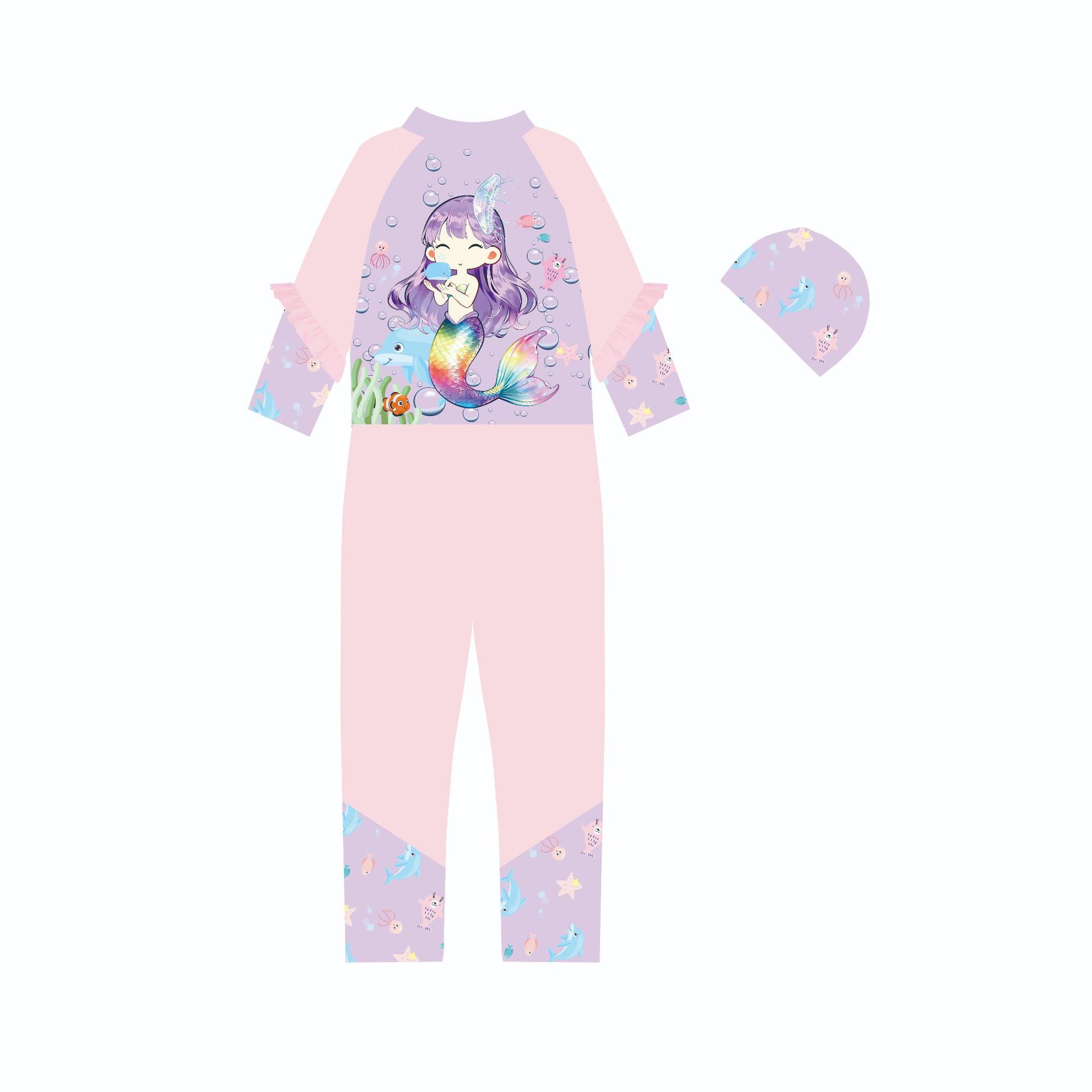 어린이 수영복 여성용 원피스 긴팔 바지 서핑 속건 중/대형 어린이 태양 방지 따뜻한 수영복 여아 수영복