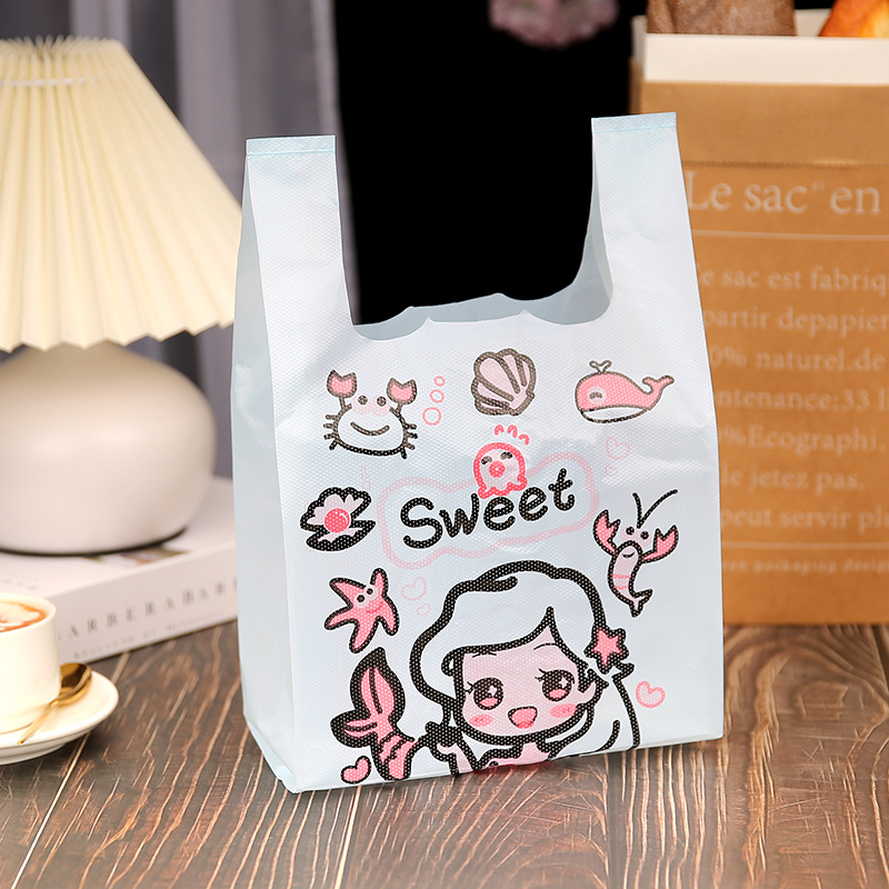 두꺼운 비닐 포장 가방 핑크 가방 선물 가방 비닐 포장 조끼 가방 조끼 가방 인쇄 로고 무료 배송
